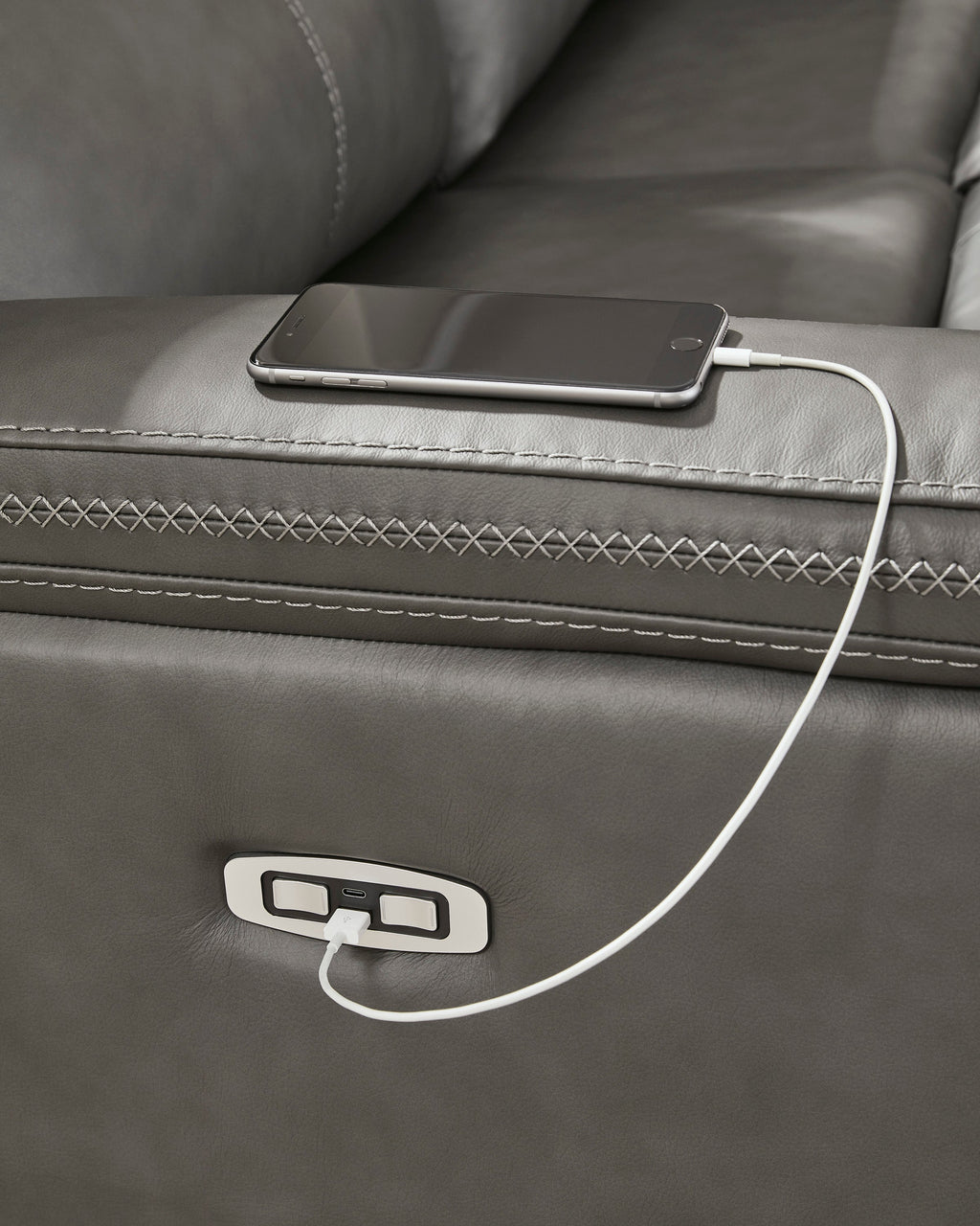 Are you ready to experience next-level relaxation? This power reclining loveseat with console combines supple leather and faux leather upholstery with smart features that make unwinding effortless. With just one touch, you can adjust your position while the power headrest keeps you perfectly aligned for reading or binge-watching your favorite shows. The Zero³ reclining requires minimal space between wall and chair back while delivering fully supported, fully reclined comfort at the touch of a button. Thoughtfully designed with sculptural padded arms and built-in USB charging, this spacious piece will be your new favorite spot to recharge—both yourself and your devices. And how about those handy cup holders?
