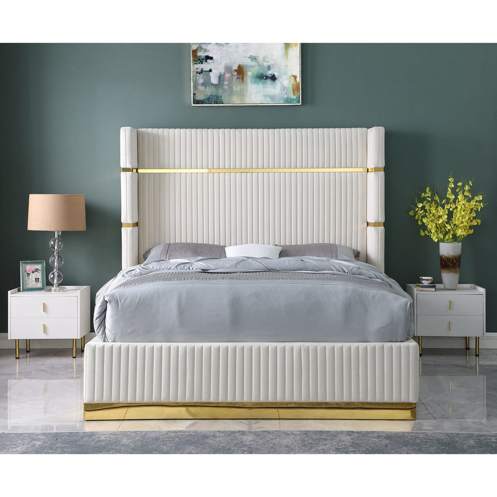 Experience modern comfort with the B786 Aspen bed in sleek cream. Featuring a sturdy design that requires no box spring, this bed offers both convenience and style. Its solid construction ensures lasting support, making it an ideal centerpiece for your bedroom.
