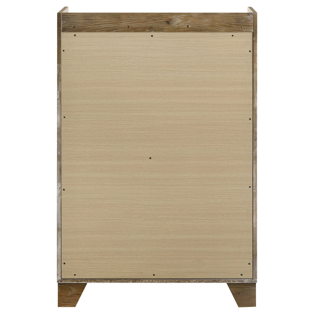 Rustic charm meets modern refinement in this five-drawer chest of drawers, where natural textures and contemporary lines come together in perfect balance. The embossed oak grain surface is finished in a warm medium oak tone that highlights the richness of the solid rubberwood construction. A faux marble melamine top adds a touch of elegance, while the sculpted finger pulls and heavy-duty glides ensure smooth, quiet function with every use.