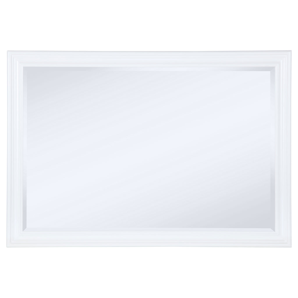 Upgrade the look and feel of your dresser with a modern framed mirror. It mounts directly to your dresser and features a horizontal silhouette perfect for choosing jewelry or fixing your hair in the morning. A white finish graces its stylish molded-style frame, offering dimension and texture in your bedroom. The mirror boasts beveled glass, adding a graceful, timeless touch of style. Add a vase of flowers or decorative sculpture in front for a stylish presentation.