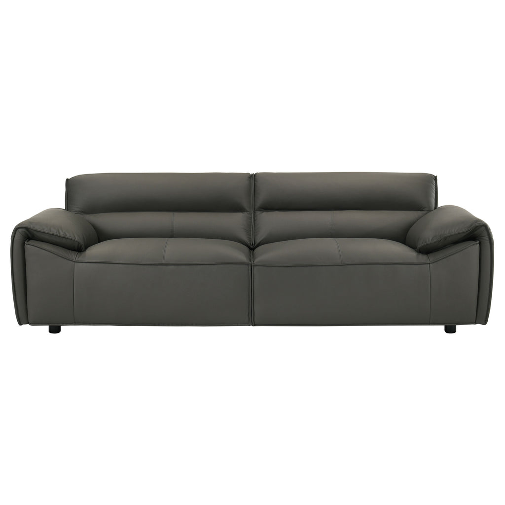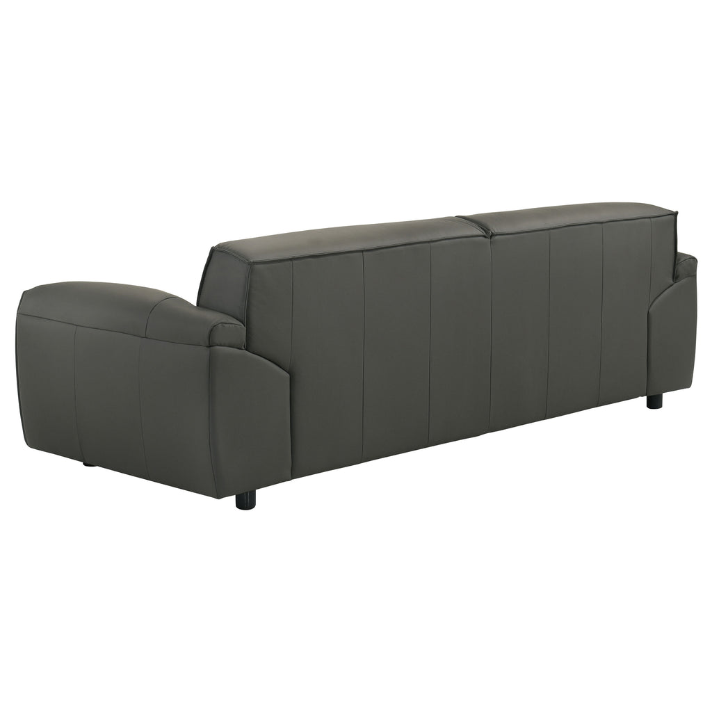 Refined and sculptural, this leather sofa set blends modern minimalism with deep, enveloping comfort. Upholstered in 100% genuine top grain leather, each piece features wide, gently sloped arms and a low-profile frame that grounds the room with effortless presence. Deep seat cushions are filled with high-density full foam and supported by sinuous springs, creating a balanced feel thatÕs both structured and soft. Tailored yet inviting, this two-piece set is crafted to elevate comfort with enduring sophistication.