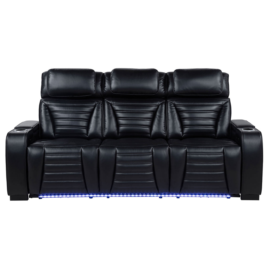 Bold and feature-rich, this dual power sofa delivers luxurious comfort with high-tech convenience. Equipped with power recline and power-adjustable headrests, it offers customizable relaxation at the touch of a button. A center drop-down console includes dual AC outlets, dual USB ports, and reading lights hidden inside the flip-up headrest. Cup holders, LED under glow, and dual USB ports in the side control panels complete this smart seating solution.
