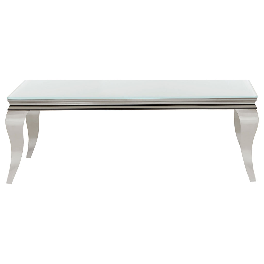 This coffee table set brings modern glam to your living space with tempered beveled glass tops and polished stainless steel cabriole legs. The reflective finish and gracefully curved Queen Anne style legs create a harmonious blend of timeless elegance and a majestic ambiance. Ideal for refined interiors, this set combines an ultra-modern aesthetic with durable practicality. Smooth, easy-to-maintain surfaces ensure it remains a stylish and functional centerpiece for any sophisticated space.