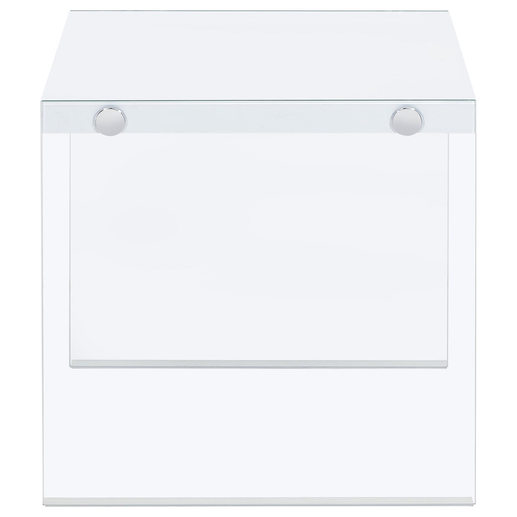 - Wood Finish: White High Gloss - Glass Color: Clear - Number of Pieces: 2 - Overall Weight Limit: 200 Lbs - Assembly Required: Yes - Materials: Glass, Medium Density Fiberboard (Mdf), Metal, Paper Laminate