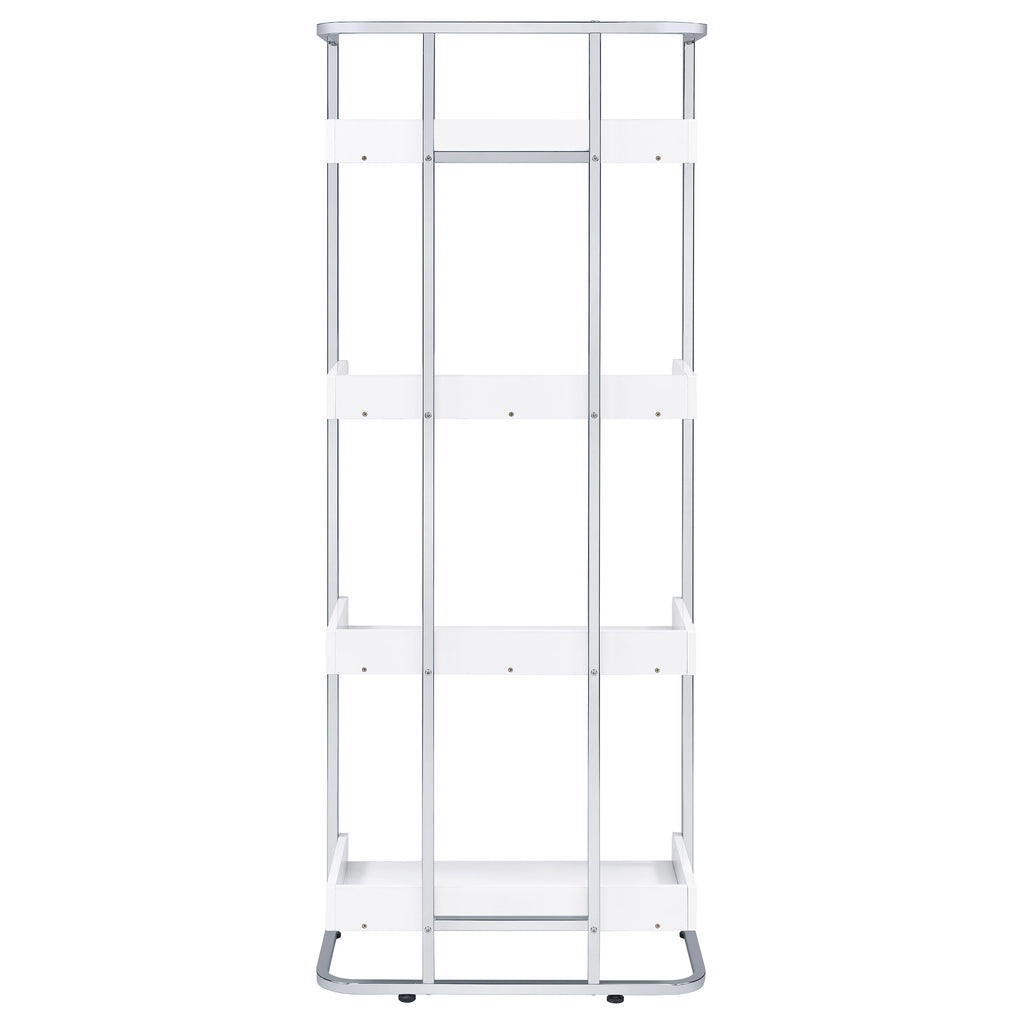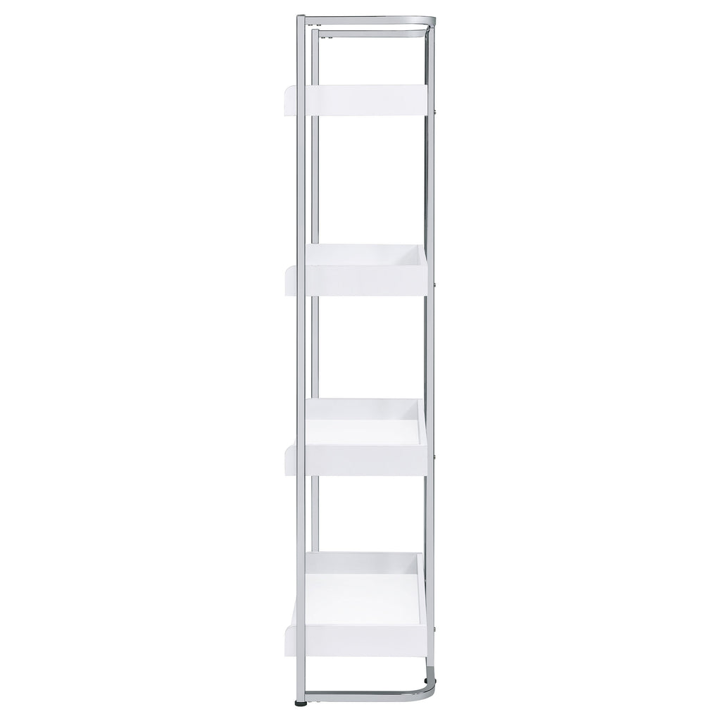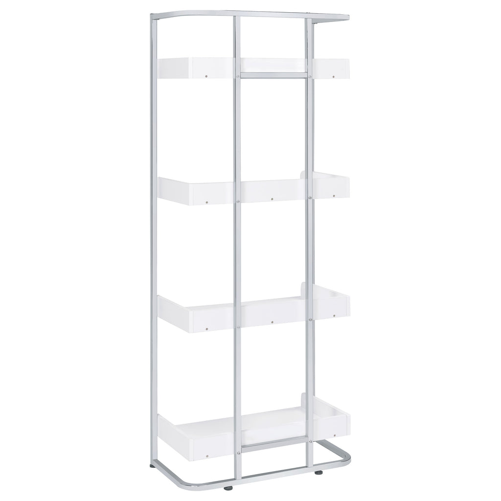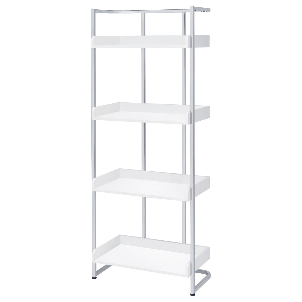 Contemporary four-shelf bookcase with rimmed trays and open back design