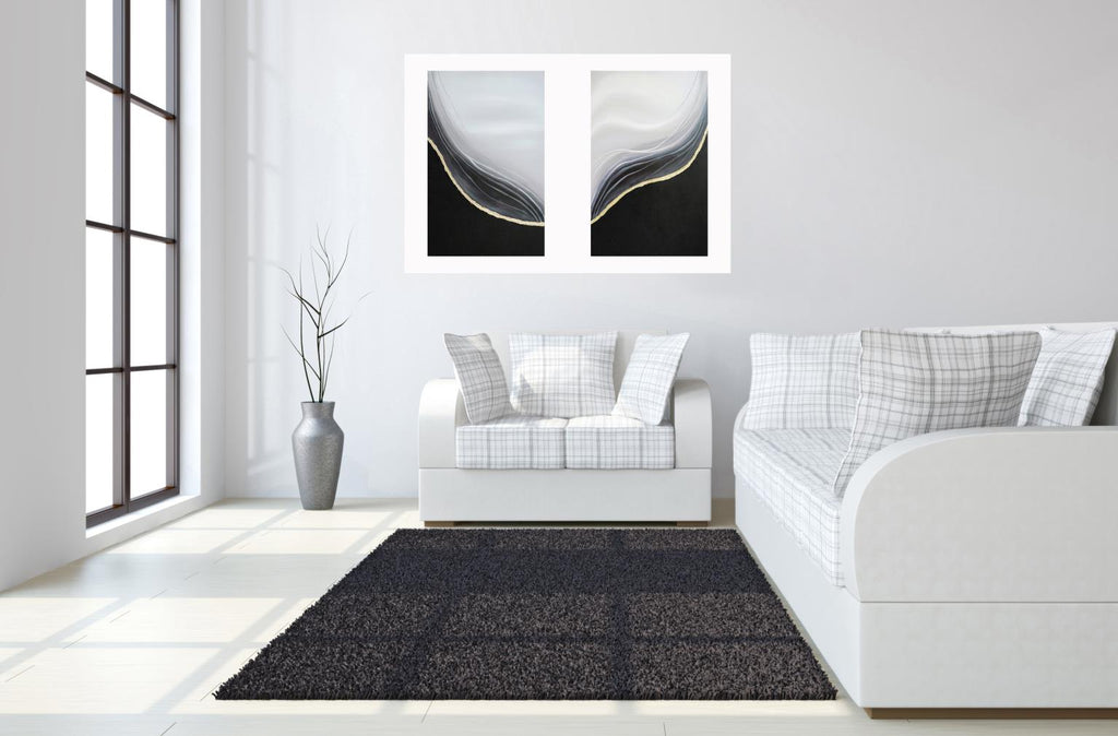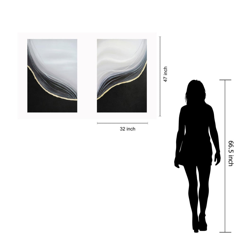 Hand Painted Textured Canvas W/ Foil In Frame (Set) Curated Canvas