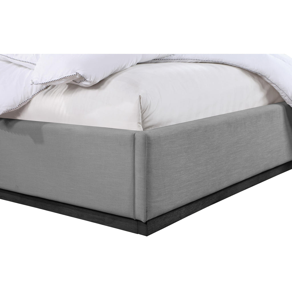 Give your bedroom a regal vibe when you add this Alfie linen textured fabric bed to the mix. The ultra tall headboard on this king-size bed makes a bold impression from all angles and is covered in rich grey linen textured fabric that forms a pleasant contrast with the black finish solid wood base. The full flat design lets you easily use this bed without a box spring - a top mattress is all that's needed.