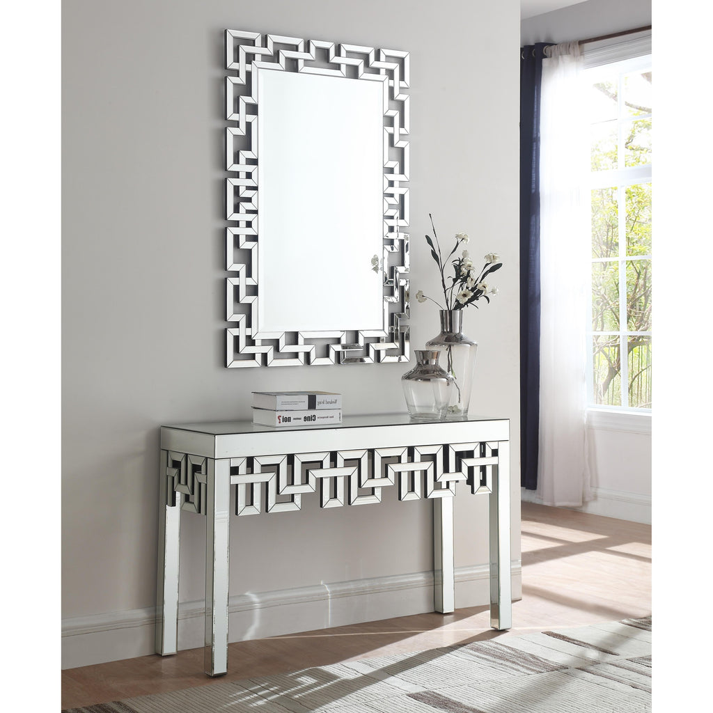 Bring contemporary panache to your home's decor with this console table. This beautiful console table has an intertwined geometric frame that draws the eye and stirs excitement in your space. Pair it with the Aria mirror for the complete look.