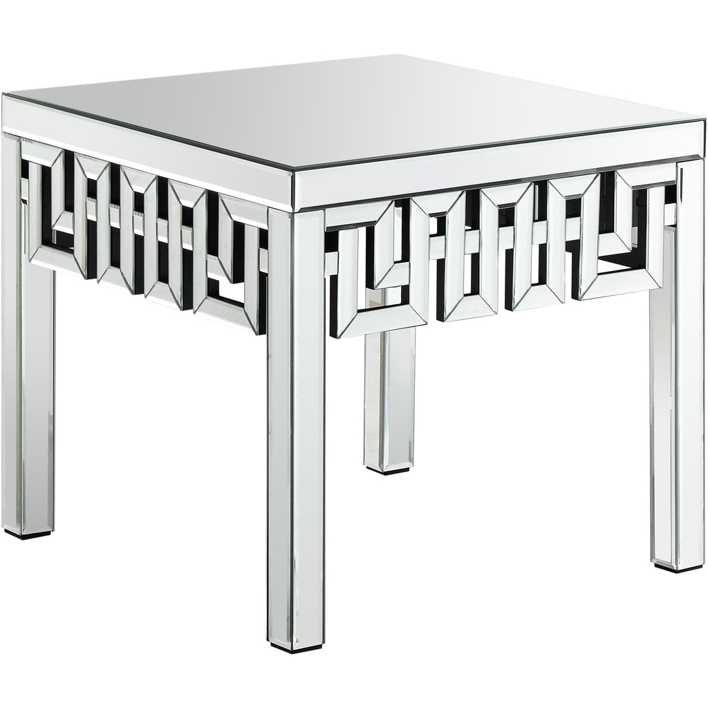 Bring contemporary panache to your home's decor with this end table. This beautiful end table has an intertwined geometric frame that draws the eye and stirs excitement in your space. The surface of the table is mirrored, adding a light, airy touch to your space and giving it a beautiful aesthetic in contemporary decor. Pair it with the Aria coffee table for the complete look.