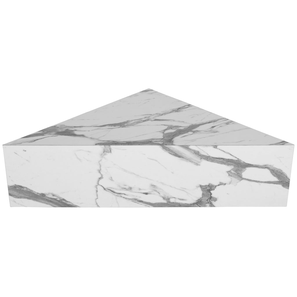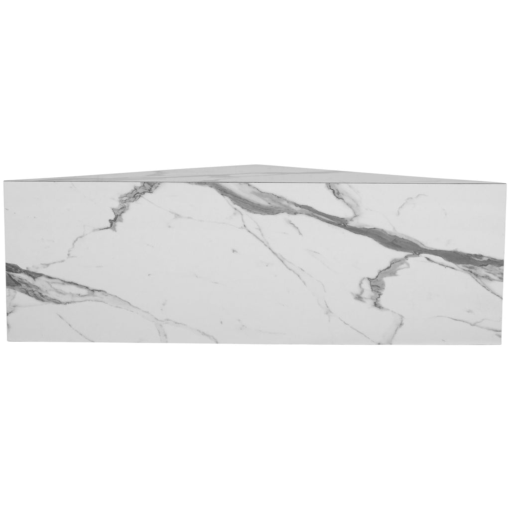 Bring a bold new look to your space with this modern Aritzia coffee table. Elegant and refined yet up-to-the-minute by design, this coffee table features a white Calacatta faux marble surface that's splendidly contemporary and meshes well with all your mod furniture and furnishings. A wooden frame adds a durable touch to this geometrically inspired coffee table, which comes in two wedge-type pieces to use as single tables or place together for a larger unit.