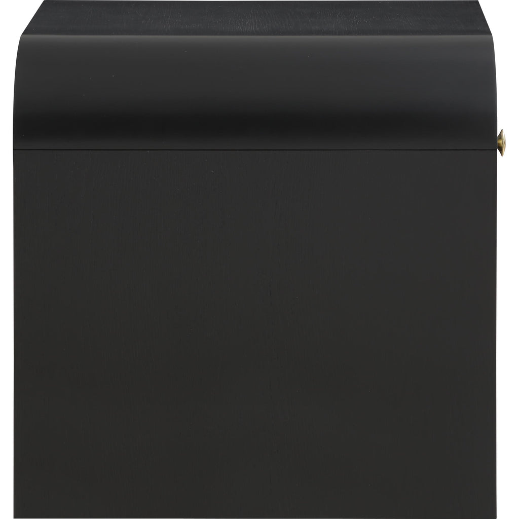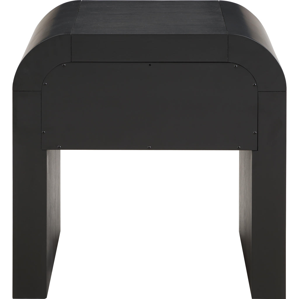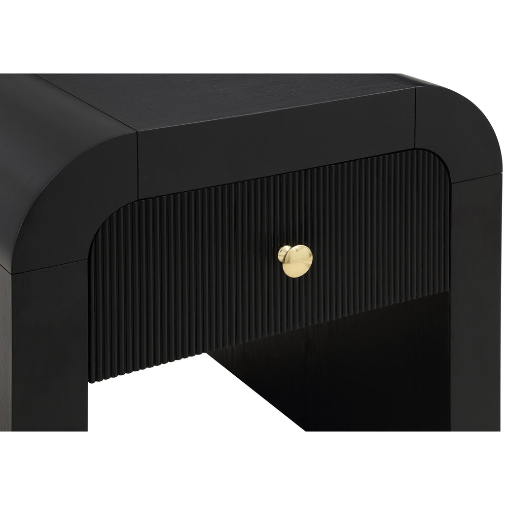 Make organizing a stylish affair when you bring home this Artisto end table. This beautiful end table features an elegantly eye-catching design with its rich wood veneer black finish and its textured drawer front design. The storage drawer give you oodles of room for storing items out of sight and out of mind, and the roomy drawer make sure that organizational power is at your fingertips. For versatility, both gold and chrome handles are included with the end table.