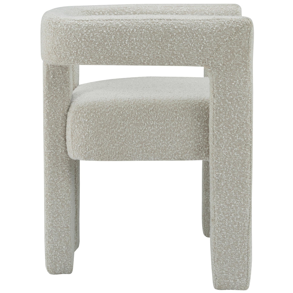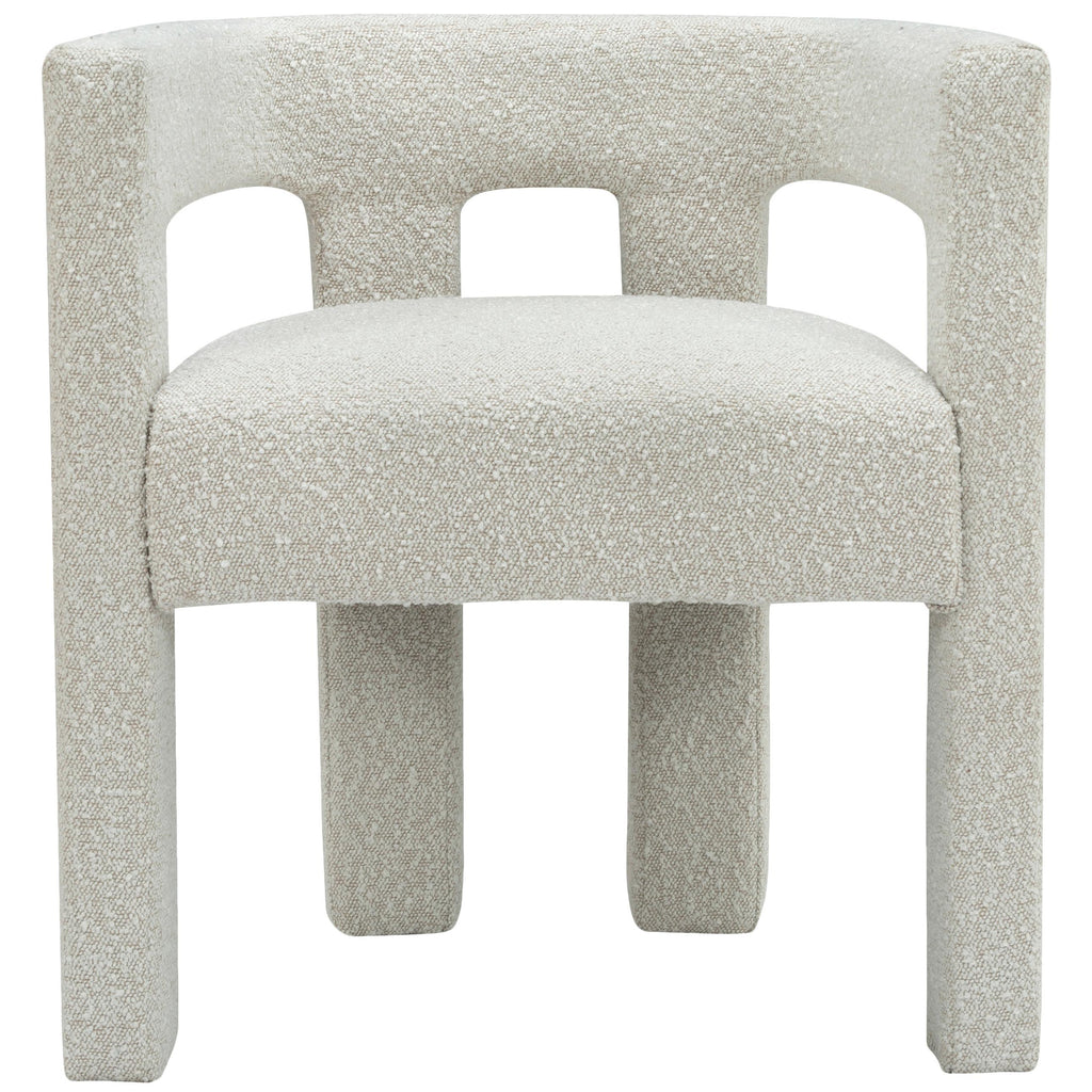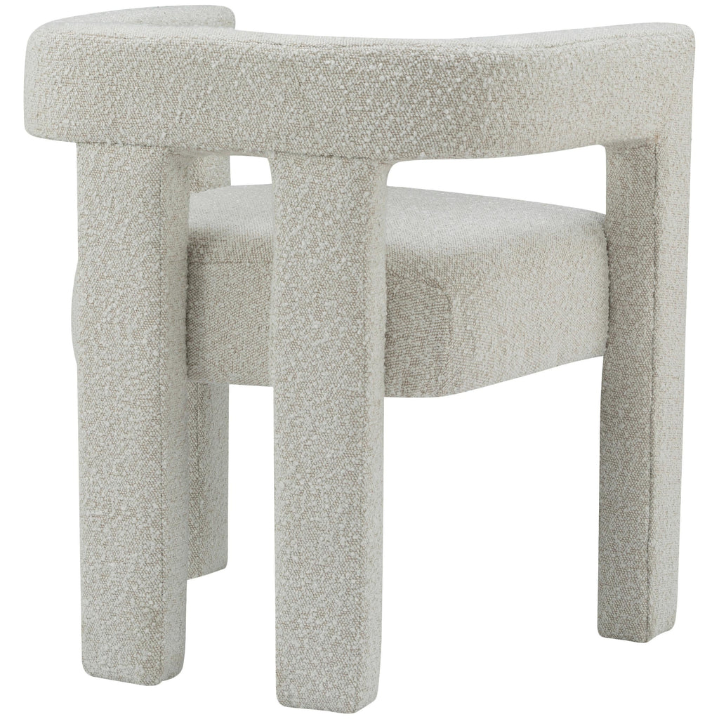 Get comfortable with this Athena dining chair featuring minimalistic design elements and a simple footprint. Artfully designed, this dining chair is made for comfort with a rounded footprint that hugs your back while you sit and relax with friends. The chair is covered top to bottom in rich cream boucle fabric, so it's super soft to the touch and elegant to the eye.