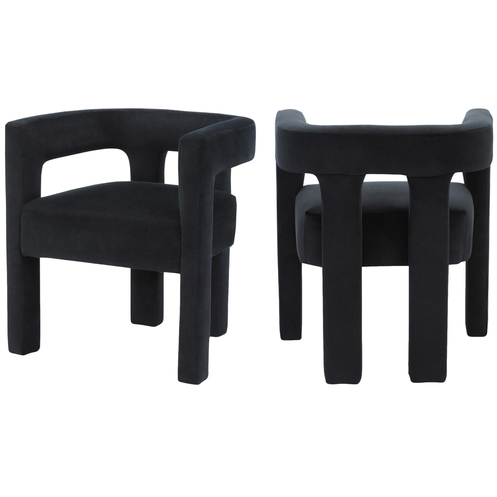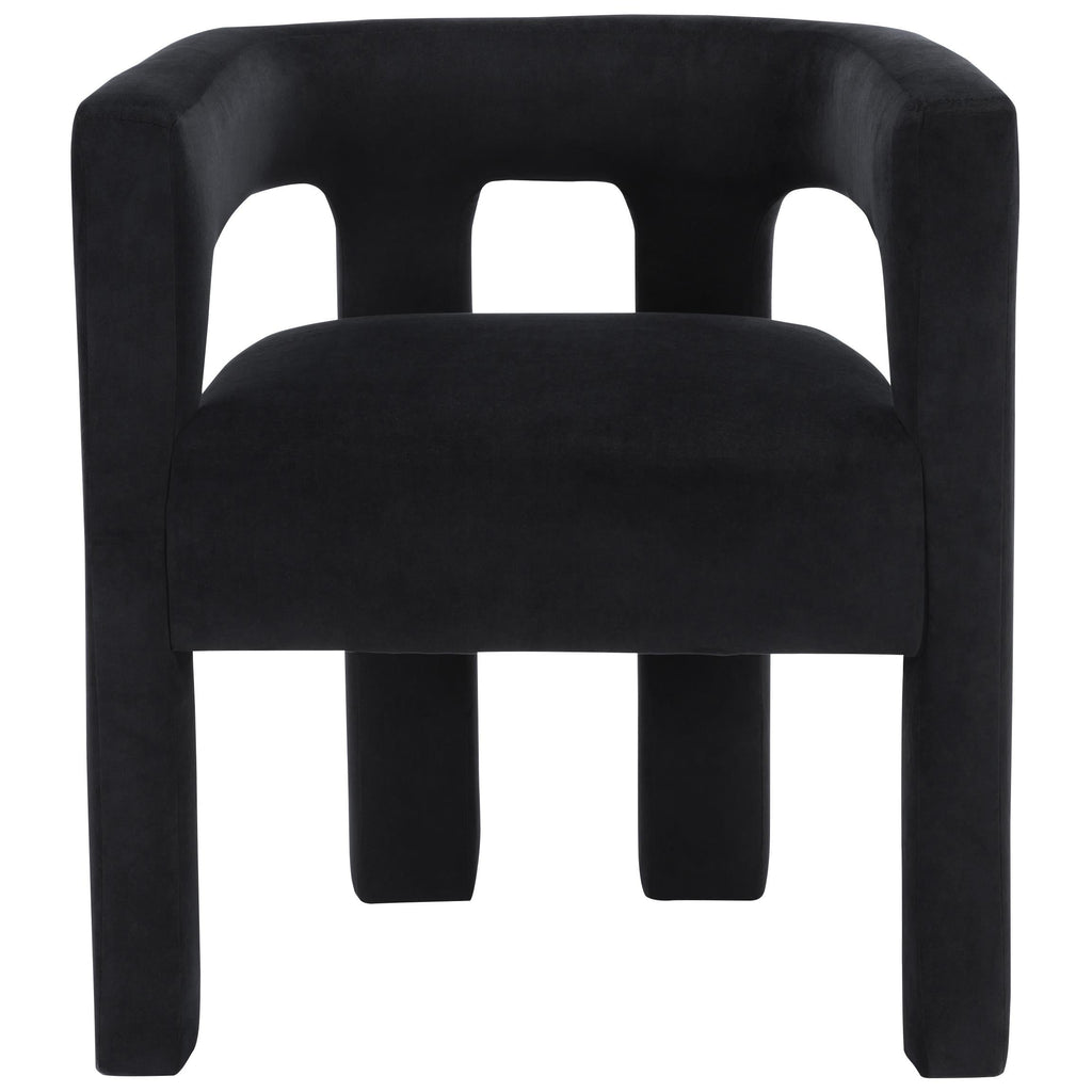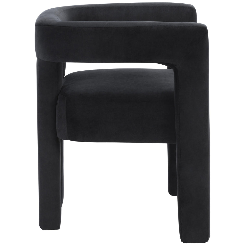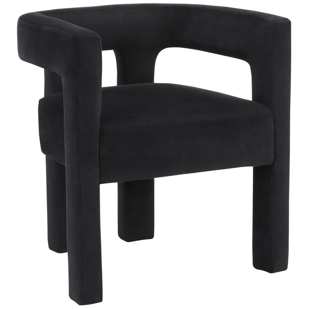 Flaunt your modish tastes with this Athena black velvet dining chair. Sophisticated by design, this dining room seating offers a sturdy frame made from high-quality materials and upholstered in soft welcoming velvet, so it always feels comfortable for family and guests. A low back provides a clean aesthetic while offering support as you wine and dine the night away. Pair it with other items in the same collection for a cohesive look.