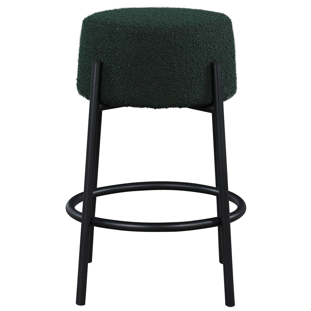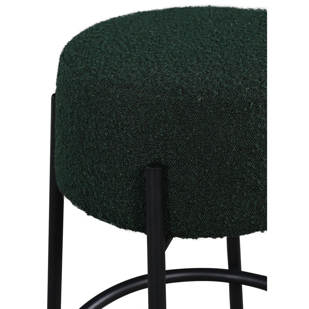 Give your kitchen or dining area a contemporary makeover with this Avalon green boucle fabric counter stool. With its matte black iron frame and rich green boucle fabric, this stool is both sturdy and stylish. This stool is counter height, making it the perfect addition to your breakfast bar or high dining table. A round foot iron foot rest curves around its legs, ensuring your feet don't dangle or grow tired while you sit, and its contemporary design is just right for the modern home.