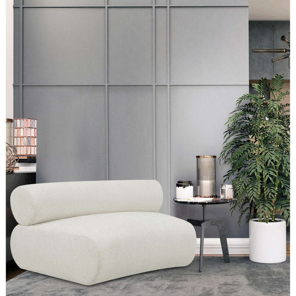Experience the perfect fusion of style and coziness with this Bale cream chenille fabric modular chair, a standout piece from the Bale collection. A seamless combination of form and function, this chair offers an inviting place to relax and curl up with a good book. Its luscious soft cream chenille upholstery exudes sophistication and provides unrivaled comfort. The chair's upholstery has a cross-hatched design for a unique texture, adding to its aesthetic beauty in the living room, study, or lounge.