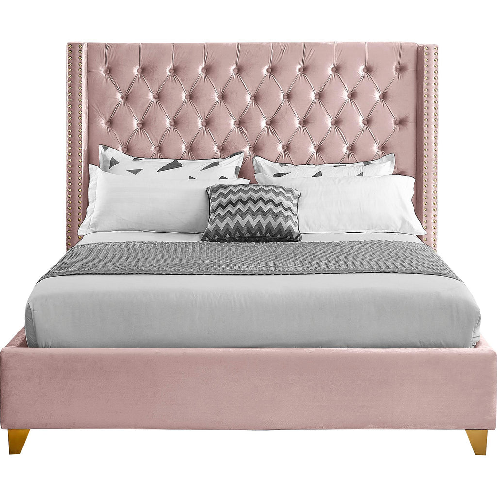 Elegant and eye-catching, the stunning Barolo Bed from Meridian Furniture is the perfect addition to any bedroom. Rich velvet covers the deep tufted design. A beautiful wing bed design is complimented by hand applied gold nail head details. Strength and beauty is guaranteed with a solid wood frame and stainless steel legs.