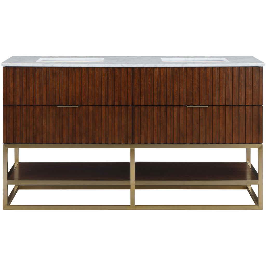 Organize your bathroom while upping your style quotient with this pretty Monad 60-inch bathroom vanity. A must for the contemporary bath, this unit features a rich walnut finish with birch wood veneer and a slatted design that's an instant eye-grabber. The ceramic sink is sized just right to serve it purpose without taking up too much room, and the drawer adds a convenient spot for storing bathroom necessities.