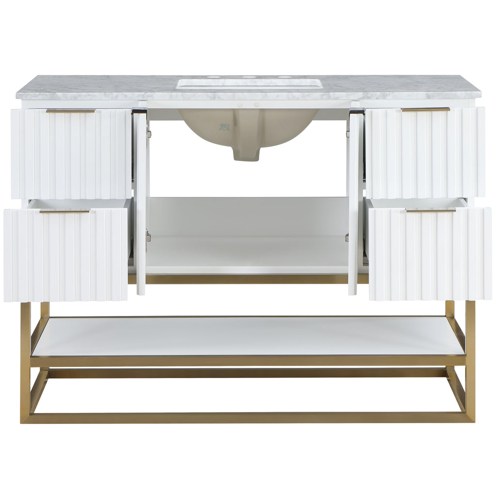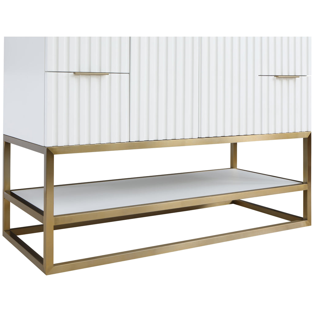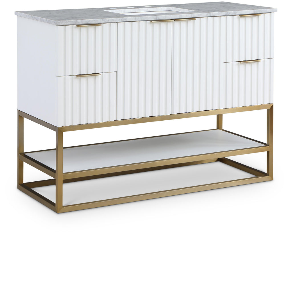 Organize your bathroom while upping your style quotient with this pretty Monad 48-inch bathroom vanity. A must for the contemporary bath, this unit features a rich white finish with birch wood veneer and a slatted design that's an instant eye-grabber. The ceramic sink is sized just right to serve it purpose without taking up too much room, and the drawer adds a convenient spot for storing bathroom necessities.