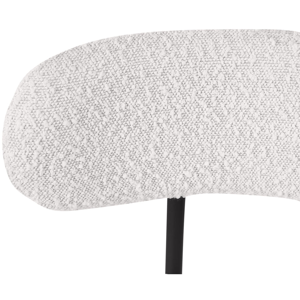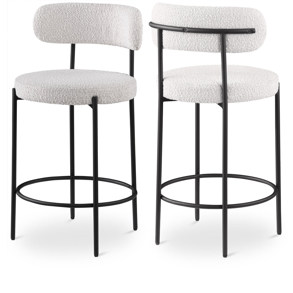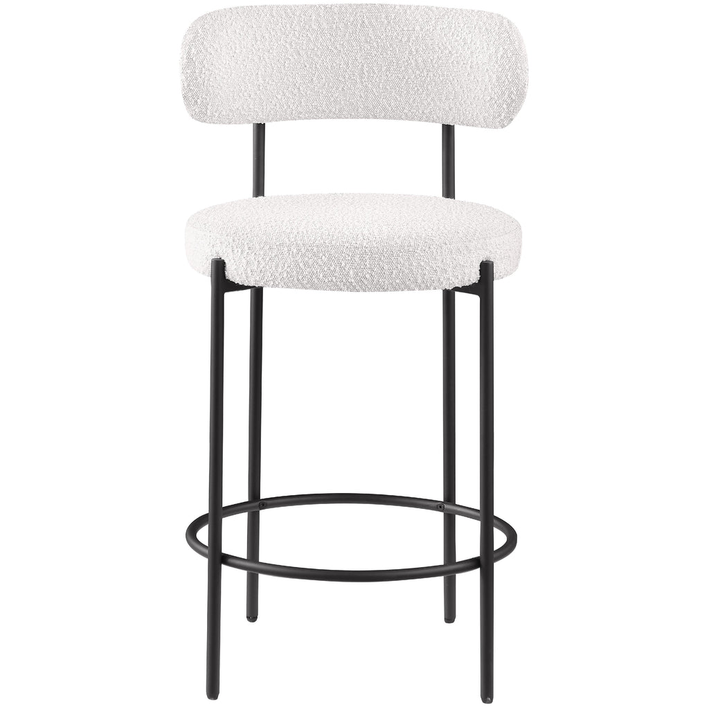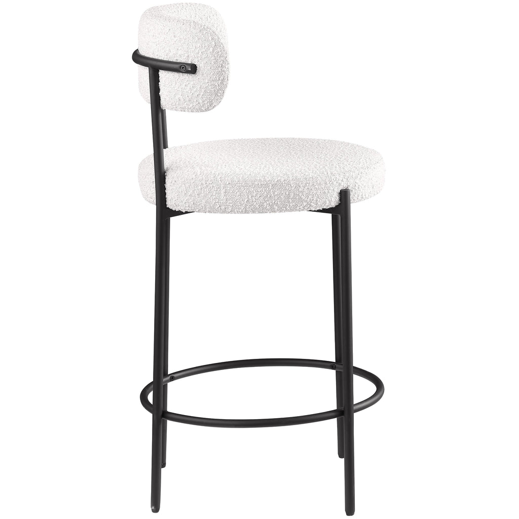 Make family, friends, and guests want to stay 'till closing time when they're seated on these Beacon boucle fabric bar stools/counter stools. These handsome stools are just the thing your kitchen counter or home bar is missing, with their ultra-modern design and beautiful look. The curved backs support the body while you sip a frosty cold one or nosh on some breakfast fare. A matte black metal frame gives the stools' design durability while the cream boucle fabric adds a touch of softness and comfort.