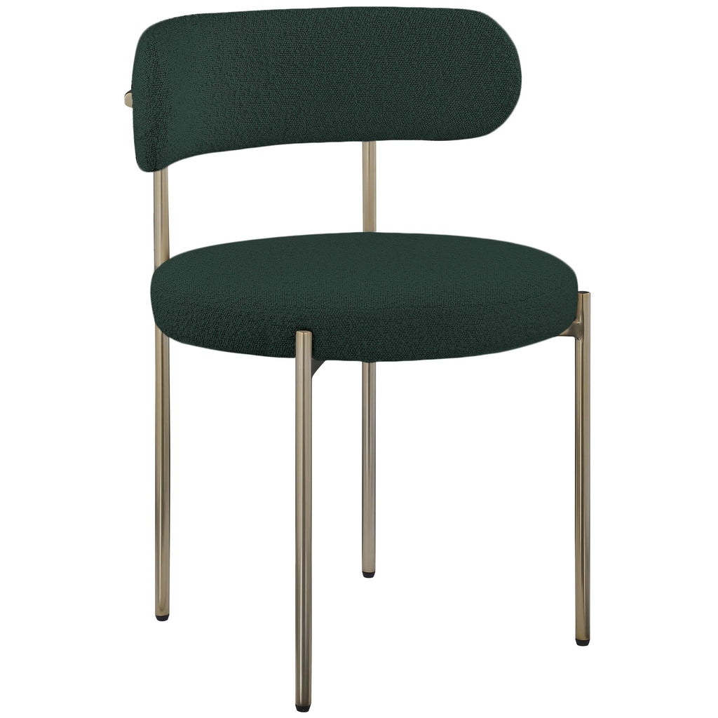 Your dining room gets a brand-new vibe when you bring home this Beacon boucle fabric dining chair. A rounded back makes sitting a pleasure, and the rich green boucle fabric is soft to the touch and feels great against the skin while being easy to maintain. An iron metal frame gives this dining room chair a durable touch, and the brushed brass finish adds a final touch of contemporary beauty. Pair this chair with the table of your choice for a dining room makeover.