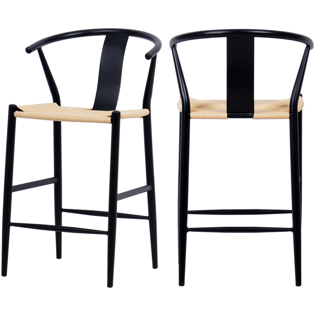 Seat yourself in resort style when you shop the Beck collection. These lovely seats are sure to draw attention wherever you use them from the dining room and beyond, with their sleek matte black metal legs and frames featuring a textured finish. Midcentury modern design comes to life with the beige-colored hand-woven rope seats that add a definitive touch of affluence to these rounded-back seats.