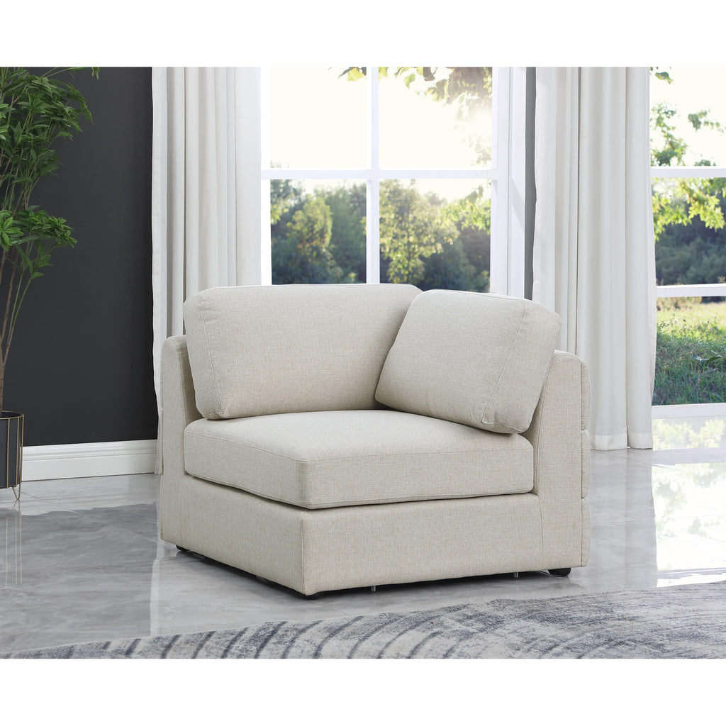 Liven up your living space with this Beckham beige durable linen polyester fabric corner chair. Its beige color complements any contemporary home decor, while its durable linen and polyester fabric upholstery provides you with a soft and comfortable place to sit. This corner chair is modular, so you can create infinite configurations, which are easily attached using the attachment latch underneath. Its linen, wood, and foam construction guarantees stability for years to come.
