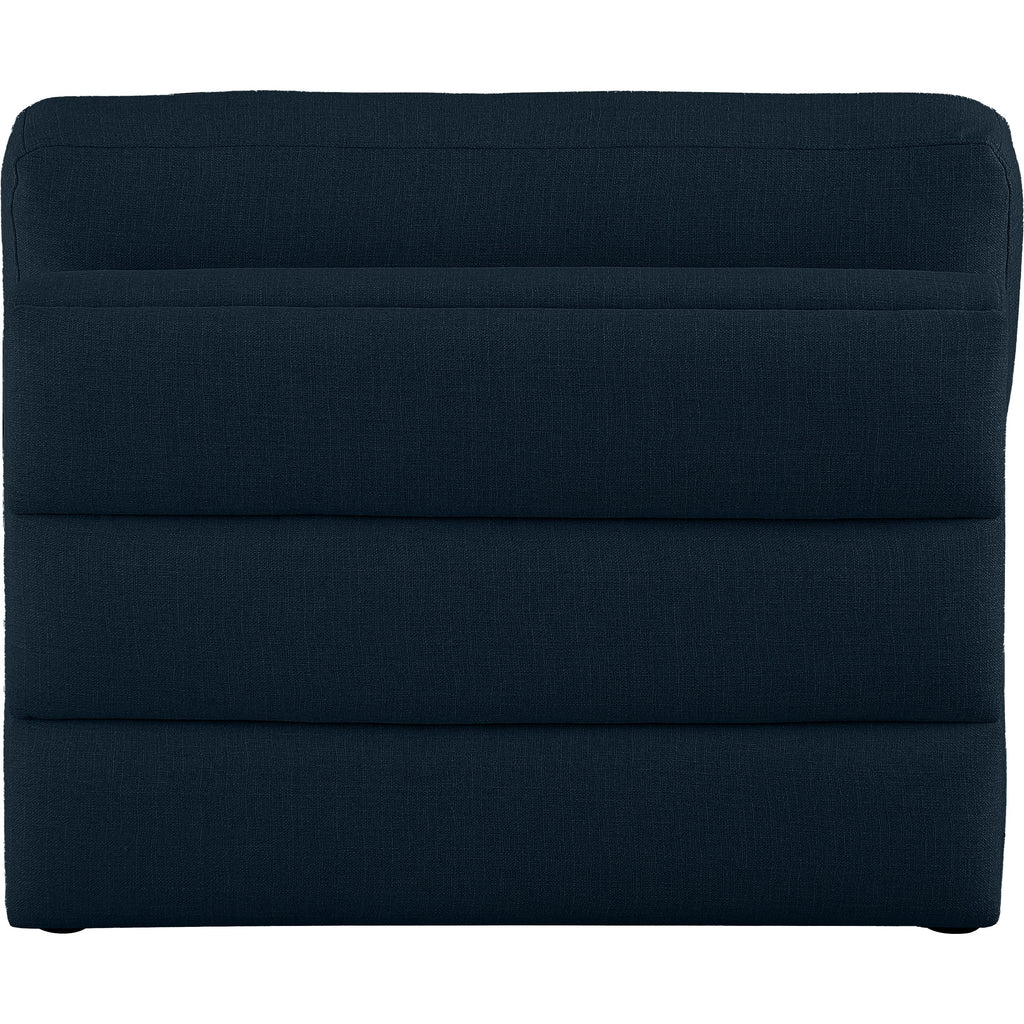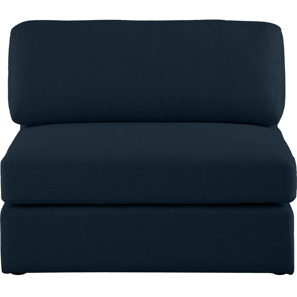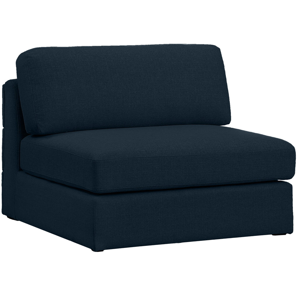 Liven up your living space with this Beckham navy durable linen polyester fabric armless chair. Its navy color complements any contemporary home decor, while its durable linen and polyester fabric upholstery provides you with a soft and comfortable place to sit. This armless chair is modular, so you can create infinite configurations, which are easily attached using the attachment latch underneath. Its linen, wood, and foam construction guarantees stability for years to come.