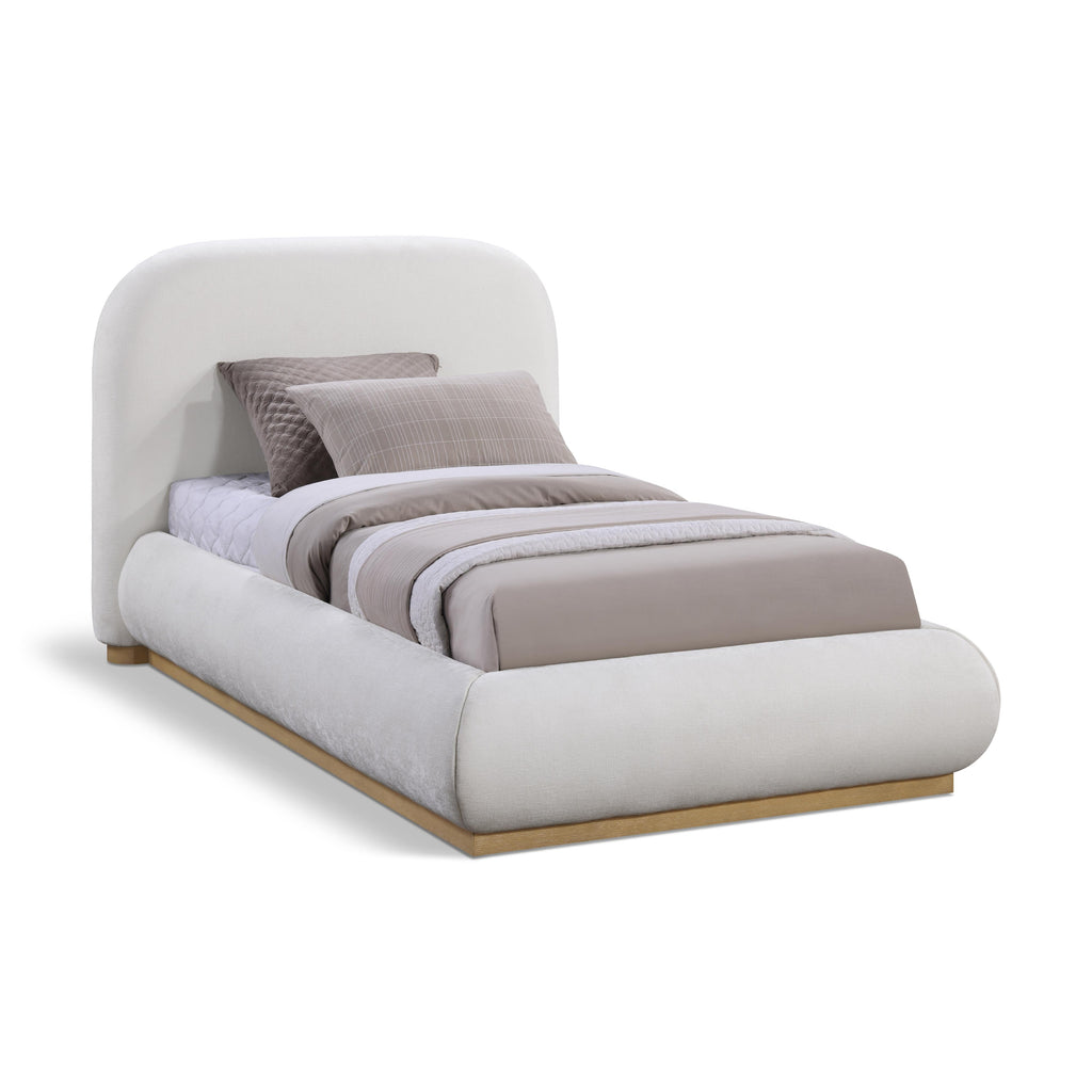 Transform your bedroom into a cozy and inviting retreat with the Vaughn Twin Bed. With its rich cream chenille textured fabric and solid wood base in a natural finish, this bed exudes a warm and inviting ambiance that will make you feel right at home. Its soft and plush surface provides a cozy and comfortable retreat, while its sturdy and durable construction ensures that you can enjoy long-lasting comfort. So go ahead, treat yourself to a restful night's sleep in this exquisite bed, and wake up feeling refreshed and rejuvenated.