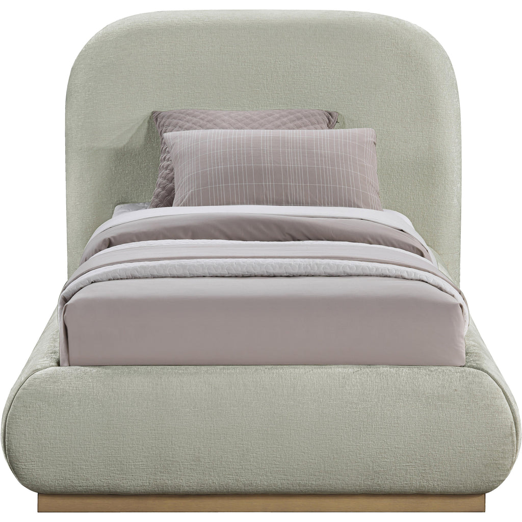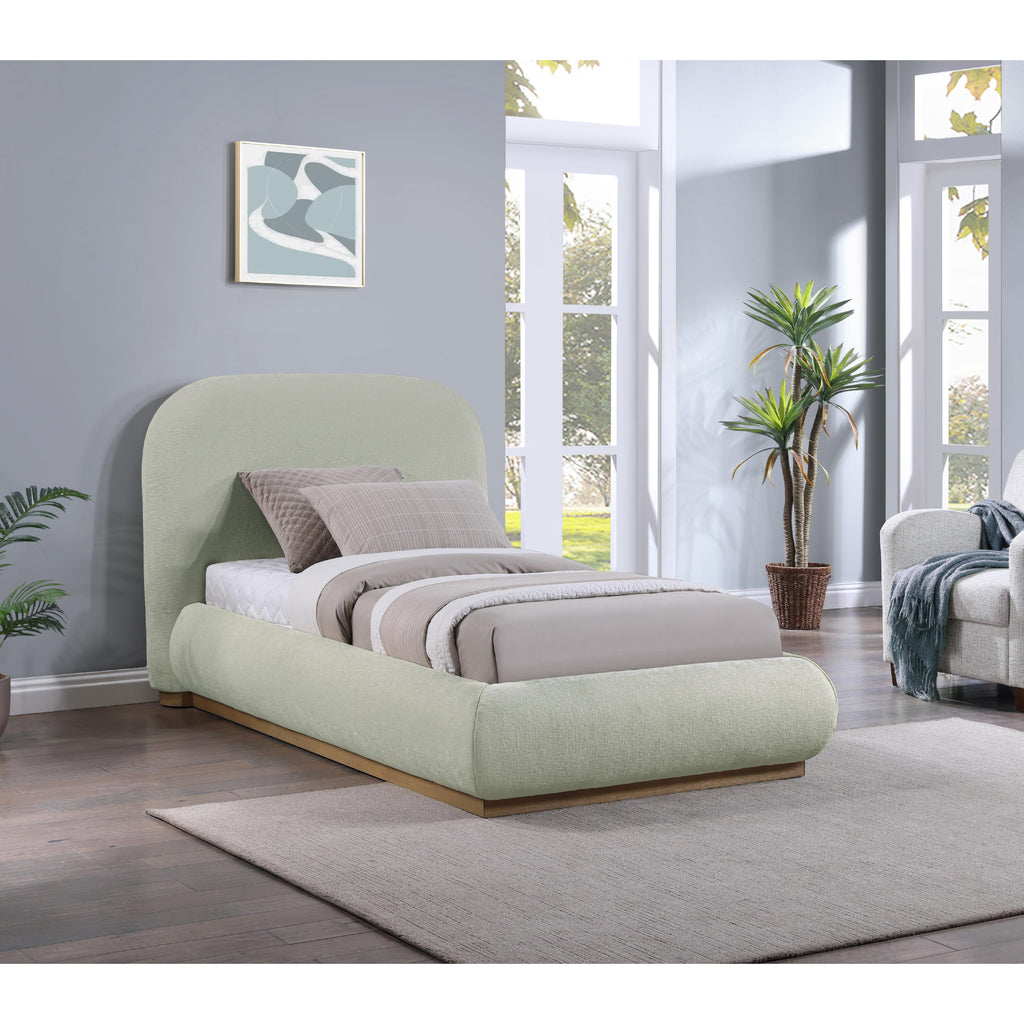 Transform your bedroom into a cozy and inviting retreat with the Vaughn Twin Bed. With its rich mint chenille textured fabric and solid wood base in a natural finish, this bed exudes a warm and inviting ambiance that will make you feel right at home. Its soft and plush surface provides a cozy and comfortable retreat, while its sturdy and durable construction ensures that you can enjoy long-lasting comfort. So go ahead, treat yourself to a restful night's sleep in this exquisite bed, and wake up feeling refreshed and rejuvenated.