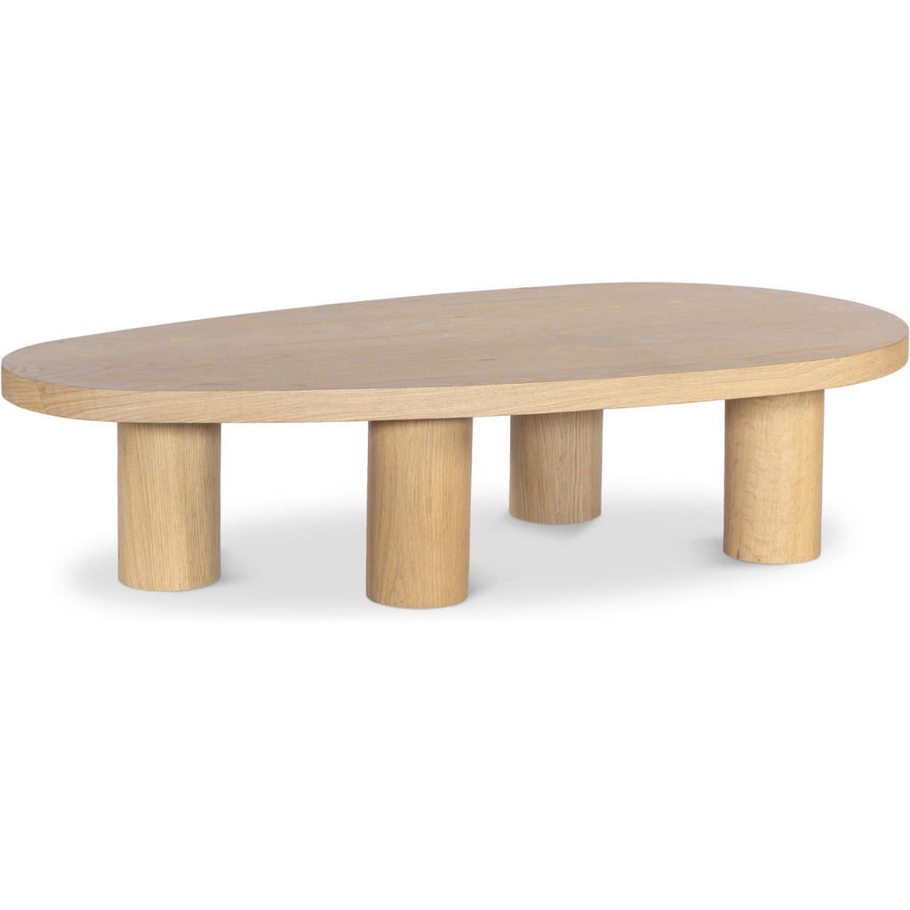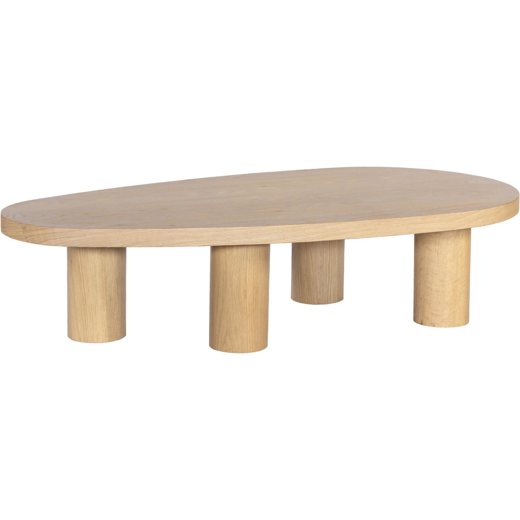 Merge style with durability when you add this oak Beekman coffee table to your room. Crafted from solid oak wood with a sleek oak finish, this table exudes both classic elegance and contemporary charm. The table's oval shape and columnar legs add an art deco slant to its design, so it's a showstopper in your space. Whether you're serving drinks or displaying decor, this table combines form and function effortlessly.