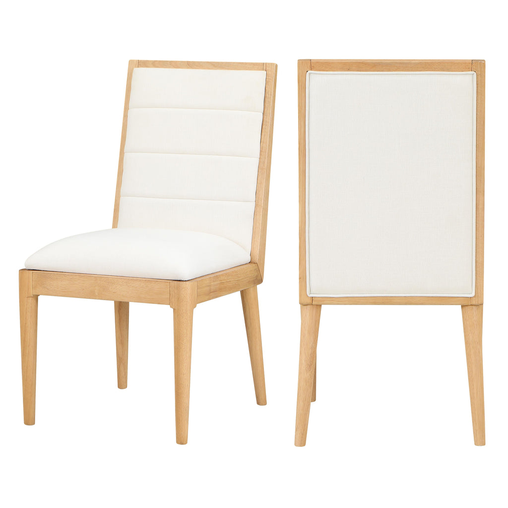 Rehab your dining room with these beautifully modern Bristol linen textured fabric dining chairs. Soft cream linen is the star of the show when it comes to this Bristol chair, giving you the rich, upscale look that compliments any space. Channel tufting on the chair's back adds visual and textural interest while keeping the padding inside aloft and preventing shifting. A wood frame in a contrasting woodgrain adds contrast and ensures this dining chair is a showstopper.