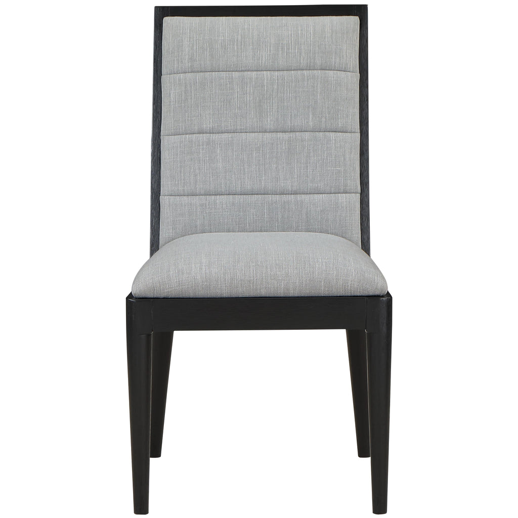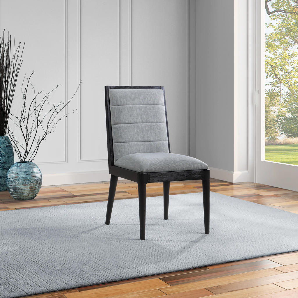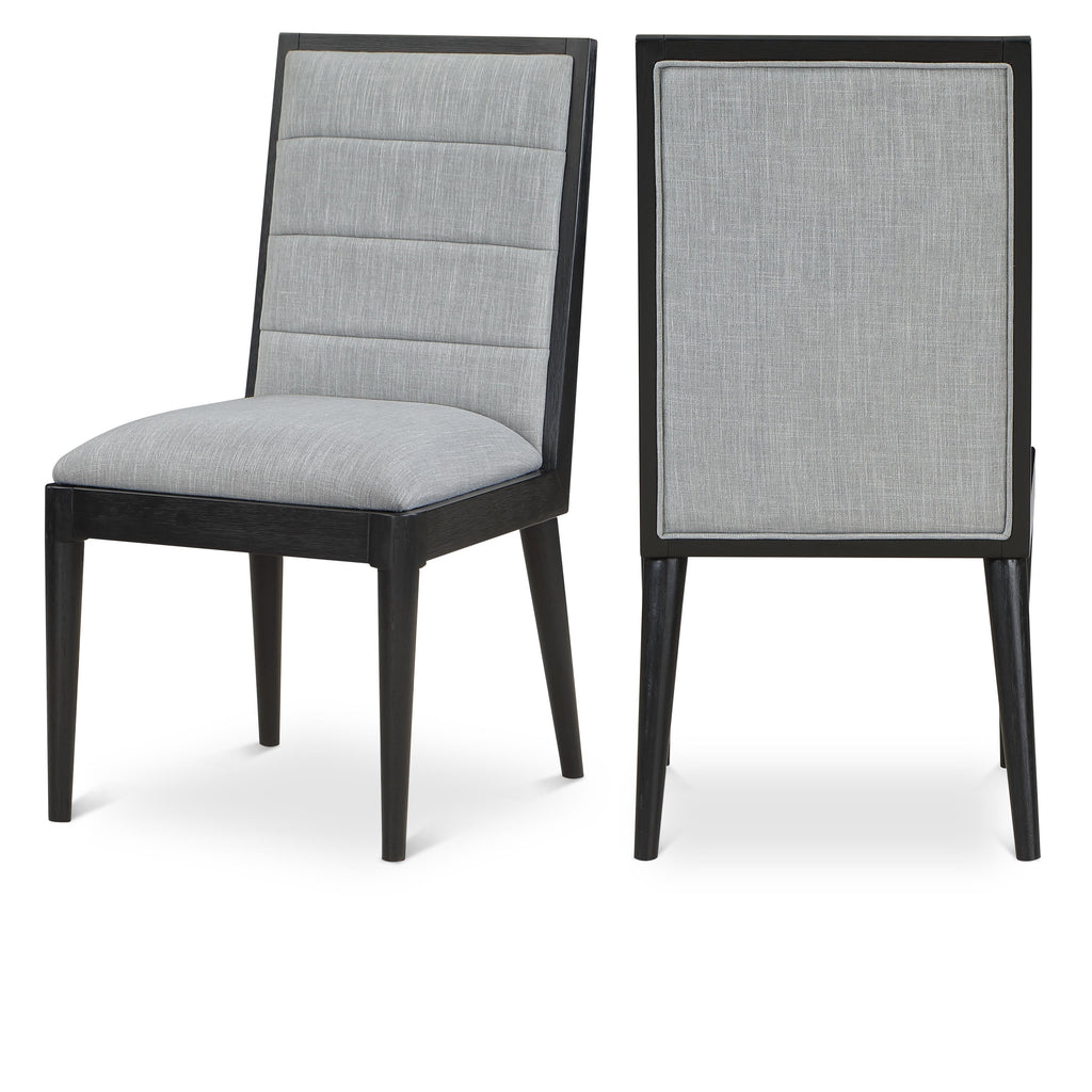 Rehab your dining room with these beautifully modern Bristol linen textured fabric dining chairs. Soft grey linen is the star of the show when it comes to this Bristol chair, giving you the rich, upscale look that compliments any space. Channel tufting on the chair's back adds visual and textural interest while keeping the padding inside aloft and preventing shifting. A black finished solid wood frame in a contrasting woodgrain adds contrast and ensures this dining chair is a showstopper.