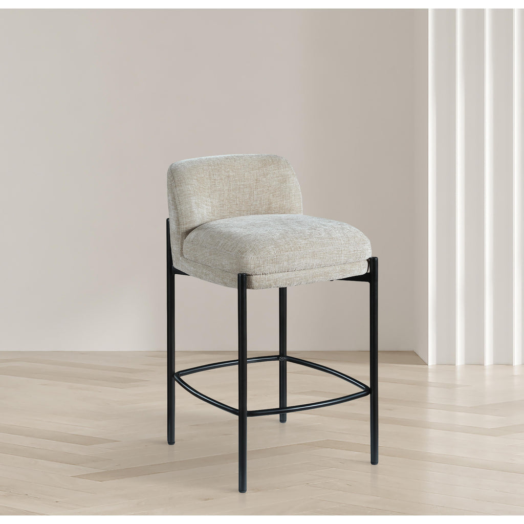 Make your kitchen counter or home bar your family's favorite spot to be with these beige Burton chenille fabric bar/counter stools. Each stool boasts soft beige chenille fabric and a sturdy matte black metal frame, ensuring both comfort and durability. A footrail across the bottom adds to the comfort factor of these handsome stools. Sold in sets of two per carton, these counter stools offer stylish and functional seating while infusing your space with a chic and modern touch.