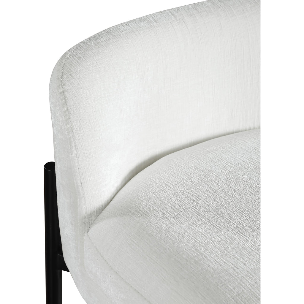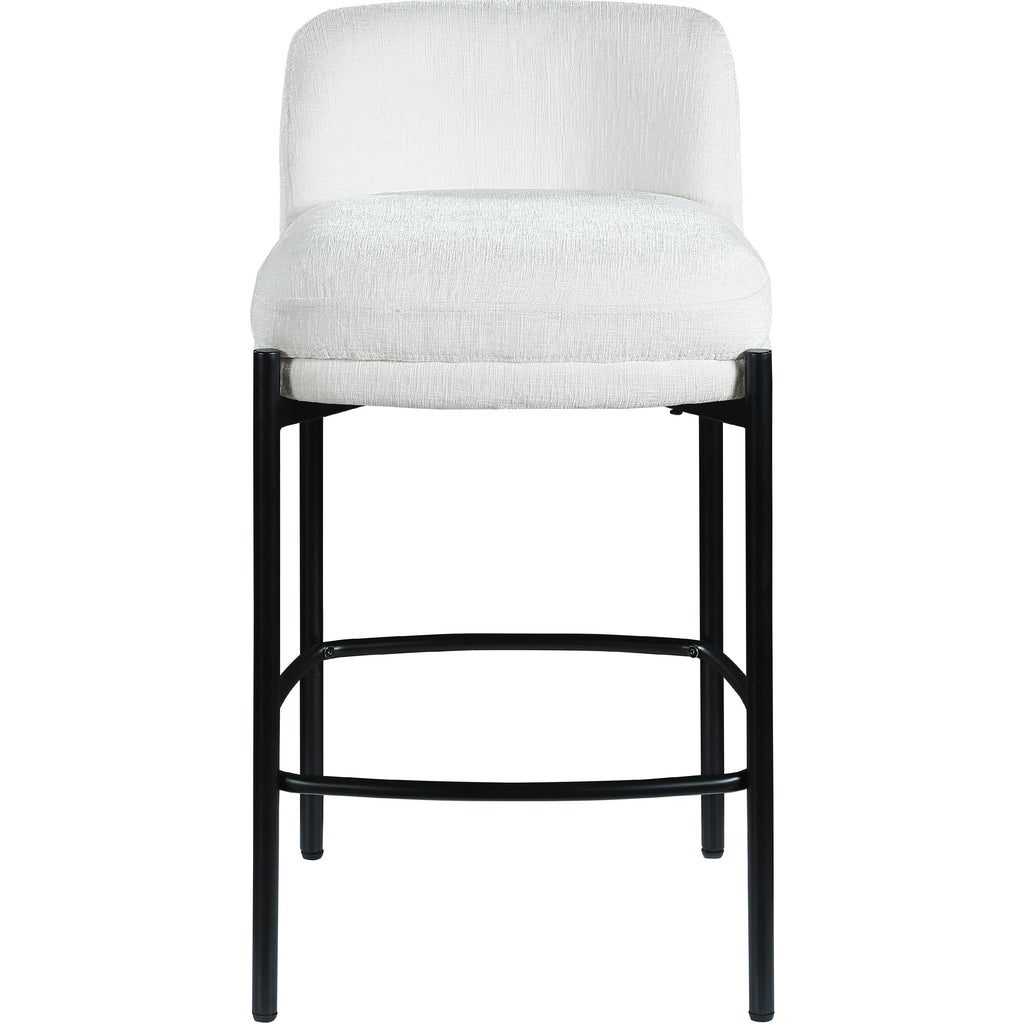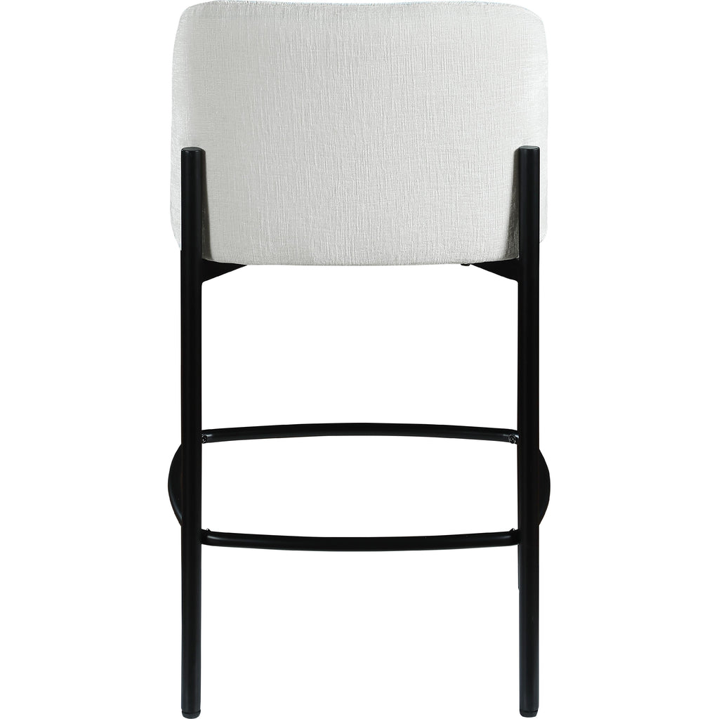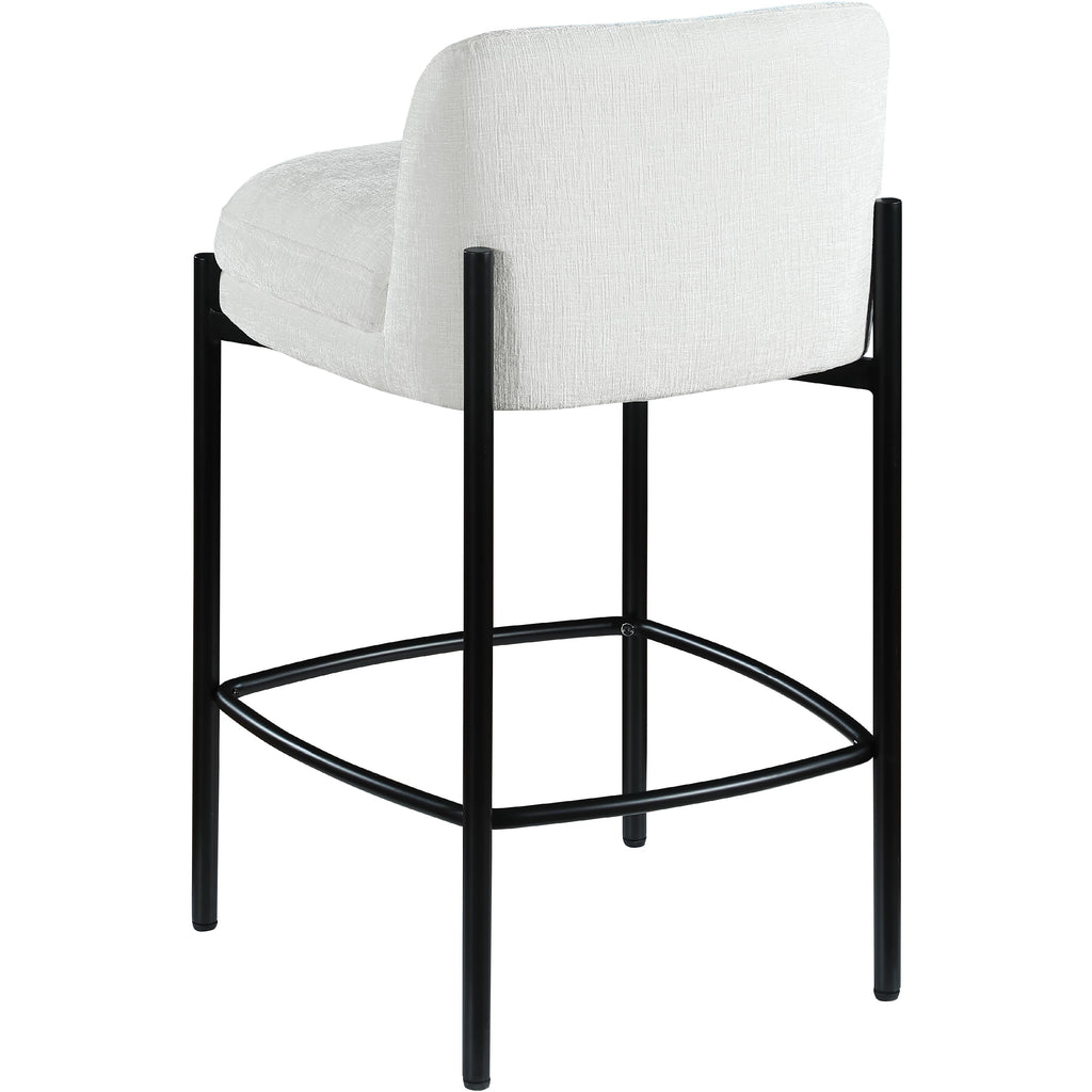 Make your kitchen counter or home bar your family's favorite spot to be with these cream Burton chenille fabric bar/counter stools. Each stool boasts soft cream chenille fabric and a sturdy matte black metal frame, ensuring both comfort and durability. A footrail across the bottom adds to the comfort factor of these handsome stools. Sold in sets of two per carton, these counter stools offer stylish and functional seating while infusing your space with a chic and modern touch.
