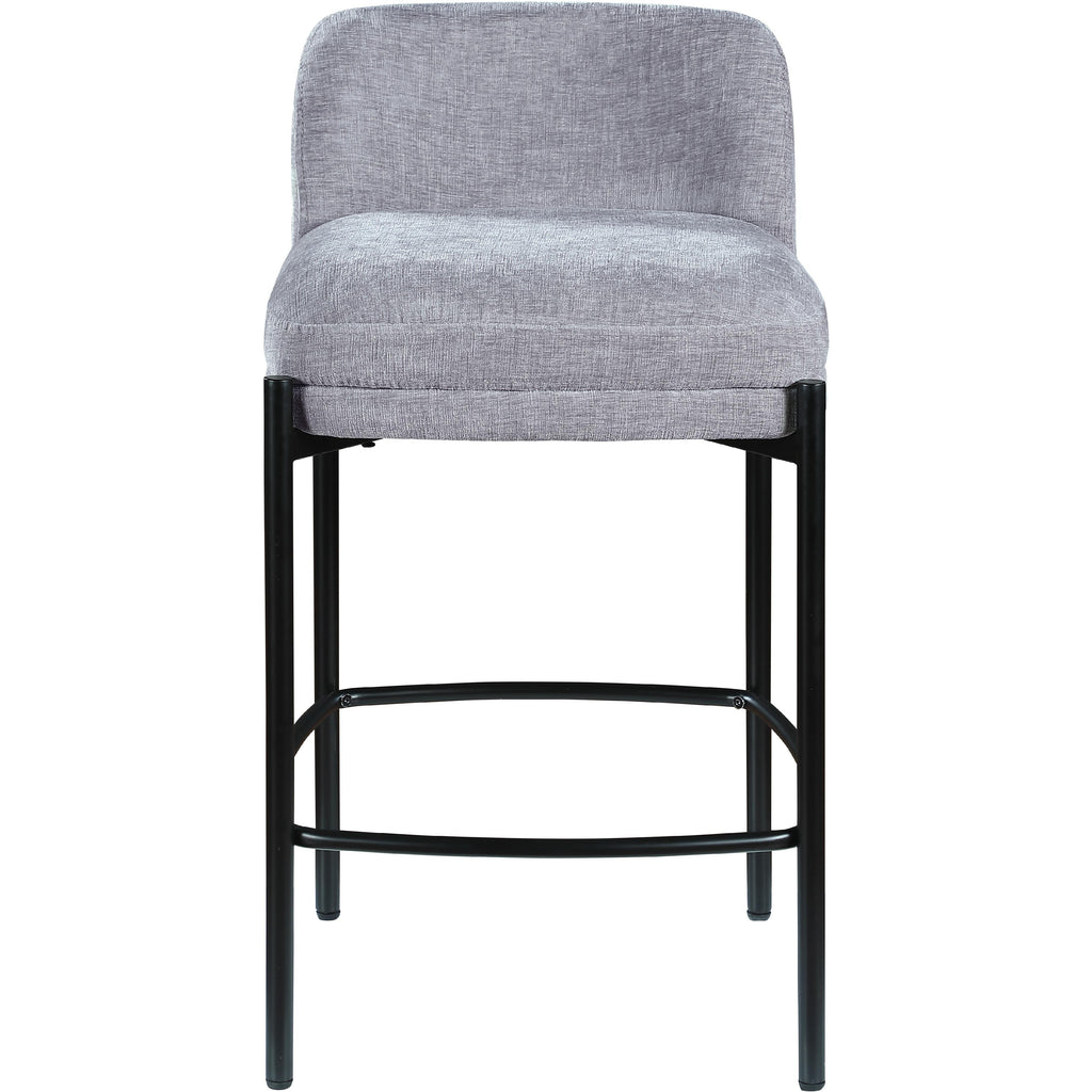 Make your kitchen counter or home bar your family's favorite spot to be with these grey Burton chenille fabric bar/counter stools. Each stool boasts soft grey chenille fabric and a sturdy matte black metal frame, ensuring both comfort and durability. A footrail across the bottom adds to the comfort factor of these handsome stools. Sold in sets of two per carton, these counter stools offer stylish and functional seating while infusing your space with a chic and modern touch.