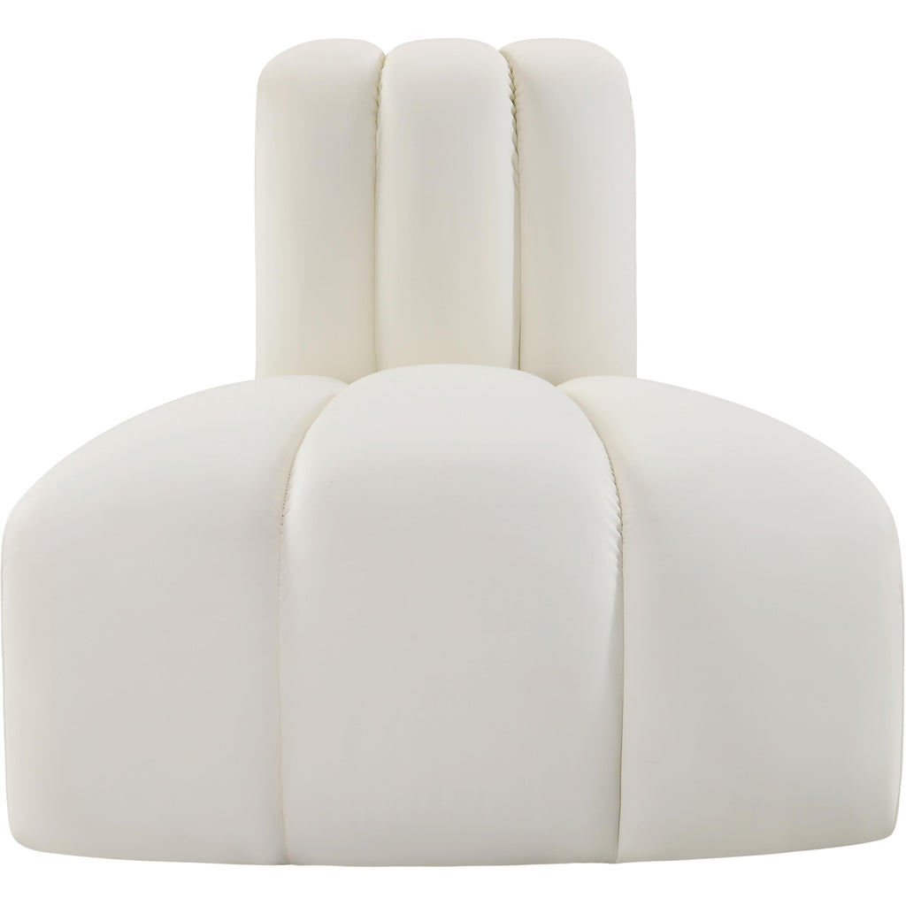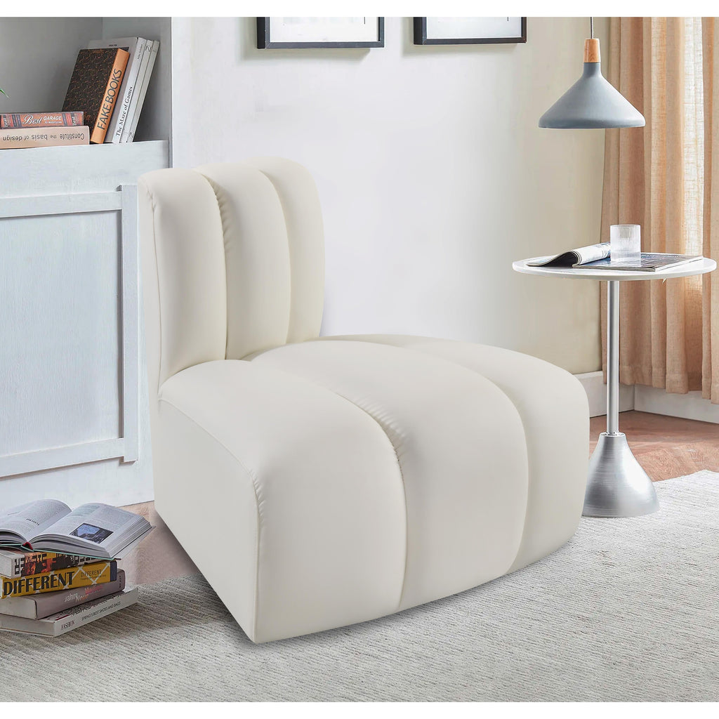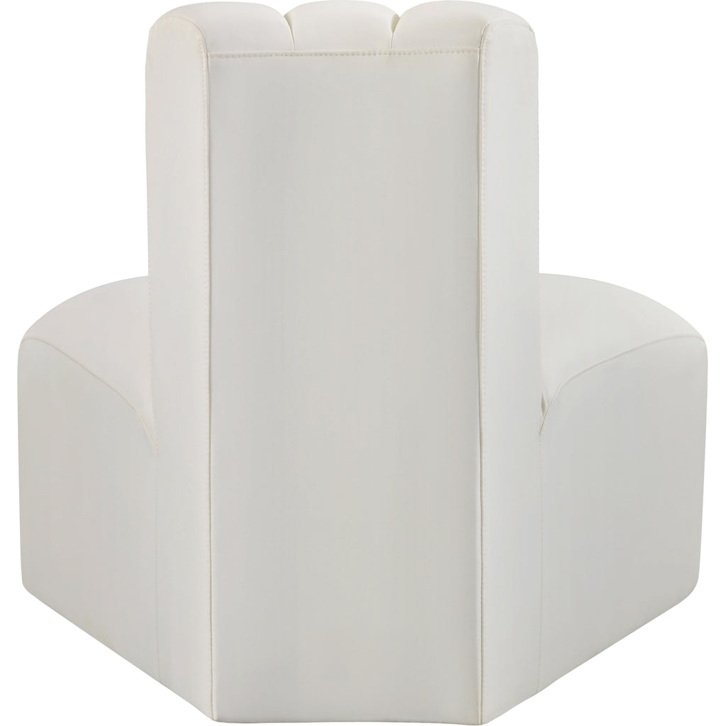 Unleash modern opulence with the Arc Vegan Leather Reversed Corner. Crafted for the modern connoisseur, this chair injects an air of refined luxury into any space. Its sleek silhouette, upholstered in supple cream vegan leather, exudes timeless sophistication while the deep channel tufting adds textural intrigue, further elevating the chair's visual appeal. The modular design makes it a versatile chameleon, effortlessly adapting to your evolving needs and preferences. Whether you envision it gracing a chic living room corner, basking in the glow of a bedroom window, or adding a touch of drama to a home office, the Arc seamlessly complements your unique interior aesthetic.