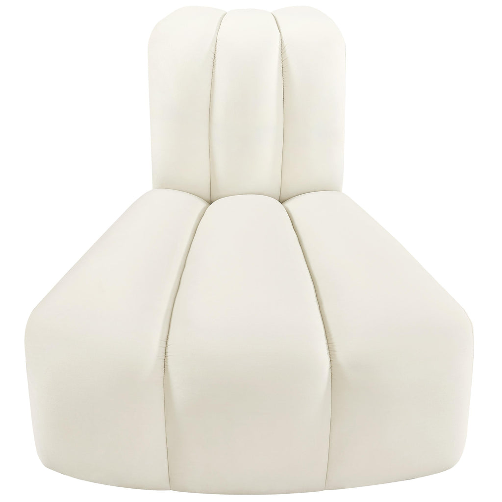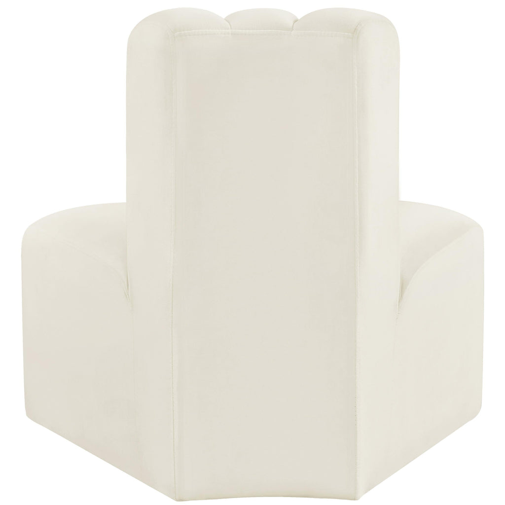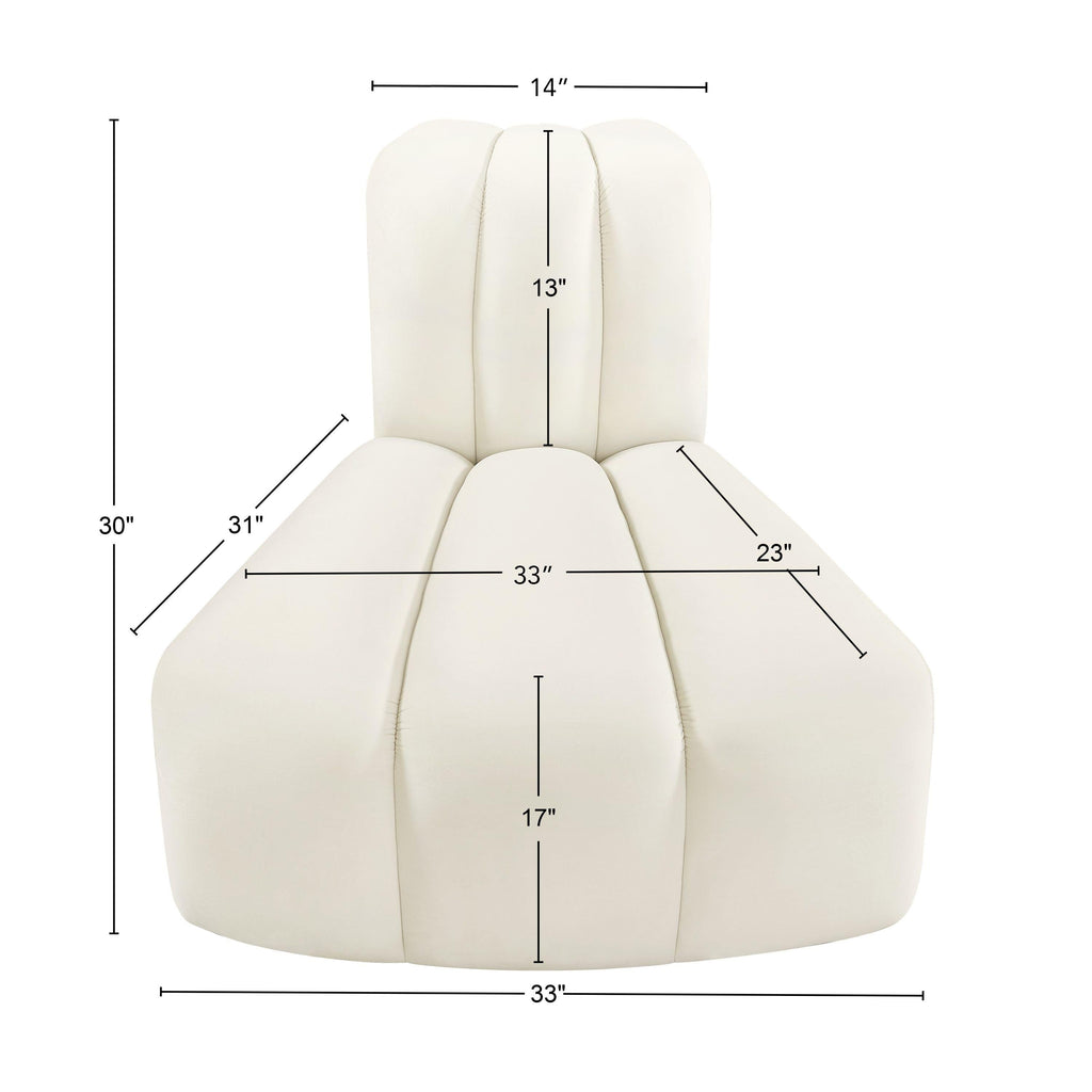 Give your living room or den the perfect blend of style and versatility with this Arc velvet fabric curved reverse corner chair. Part of the Arc modular furniture collection, this chair comes upholstered in rich cream velvet fabric and features deep channel tufting that adds a touch of luxury while enhancing comfort and support. A seamless combination of form and function, this chair can be used with other Arc pieces to create a myriad of configurations in your well-curated room.