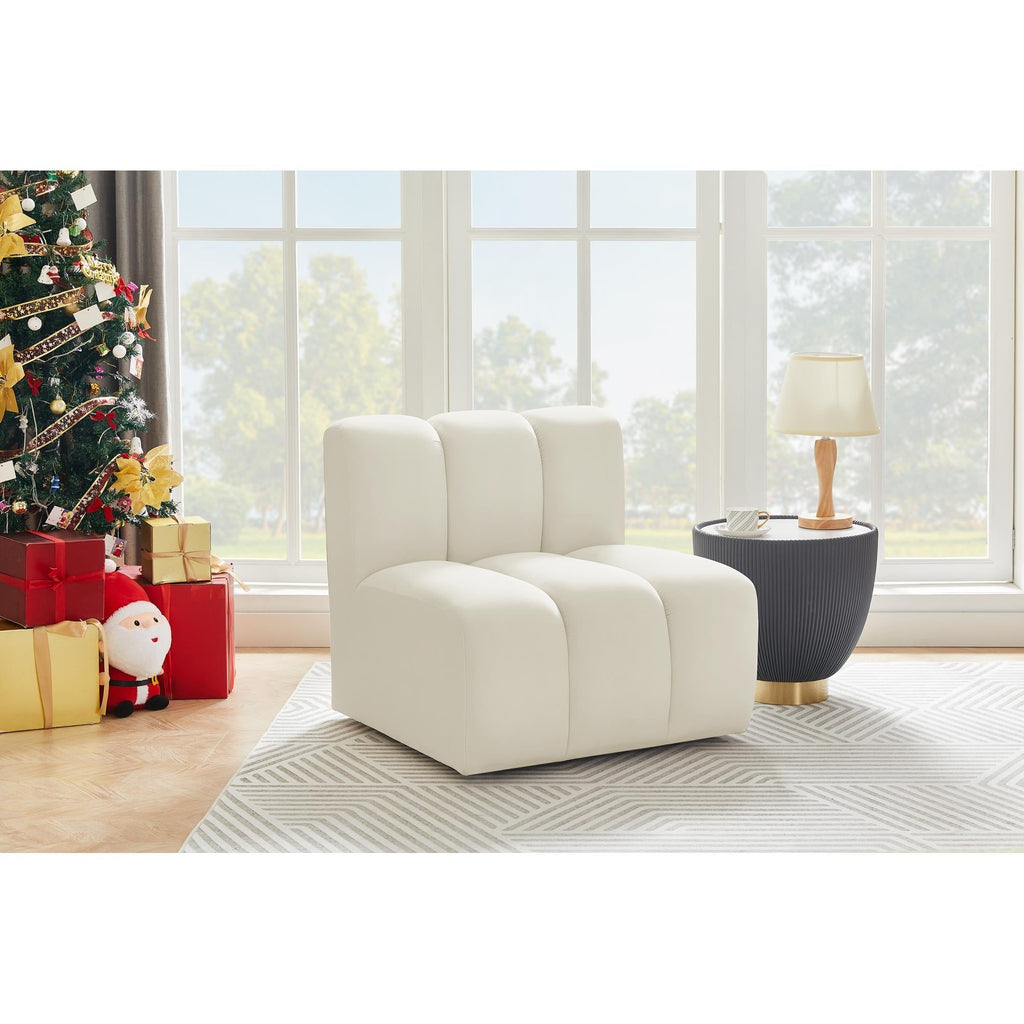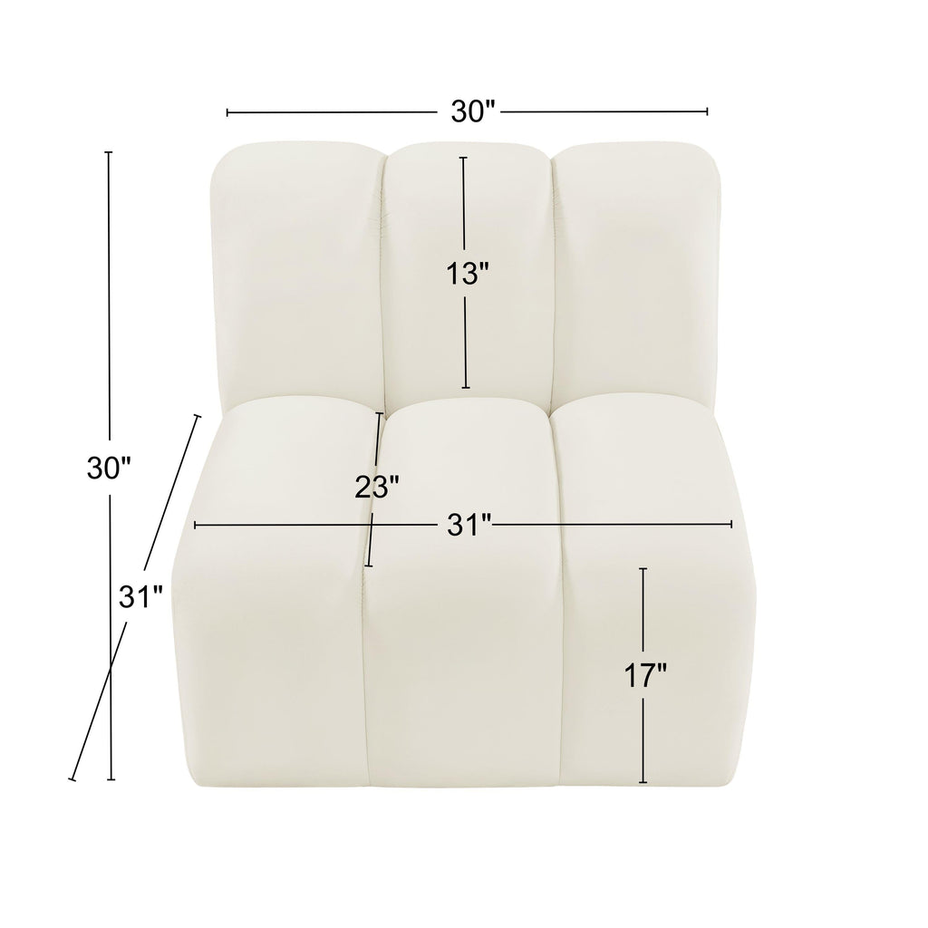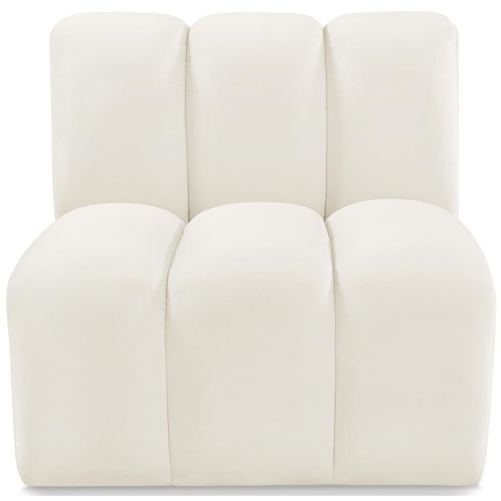 Give your living room or den the perfect blend of style and versatility with this Arc velvet fabric straight chair. Part of the Arc modular furniture collection, this chair comes upholstered in rich cream velvet fabric and features deep channel tufting that adds a touch of luxury while enhancing comfort and support. A seamless combination of form and function, this chair can be used with other Arc pieces to create a myriad of configurations in your well-curated room.