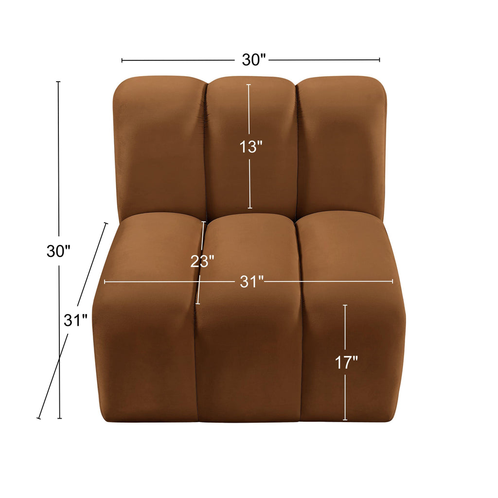 Give your living room or den the perfect blend of style and versatility with this Arc velvet fabric straight chair. Part of the Arc modular furniture collection, this chair comes upholstered in rich saddle velvet fabric and features deep channel tufting that adds a touch of luxury while enhancing comfort and support. A seamless combination of form and function, this chair can be used with other Arc pieces to create a myriad of configurations in your well-curated room.