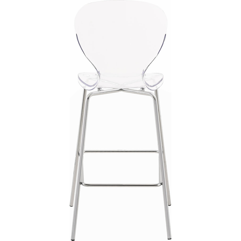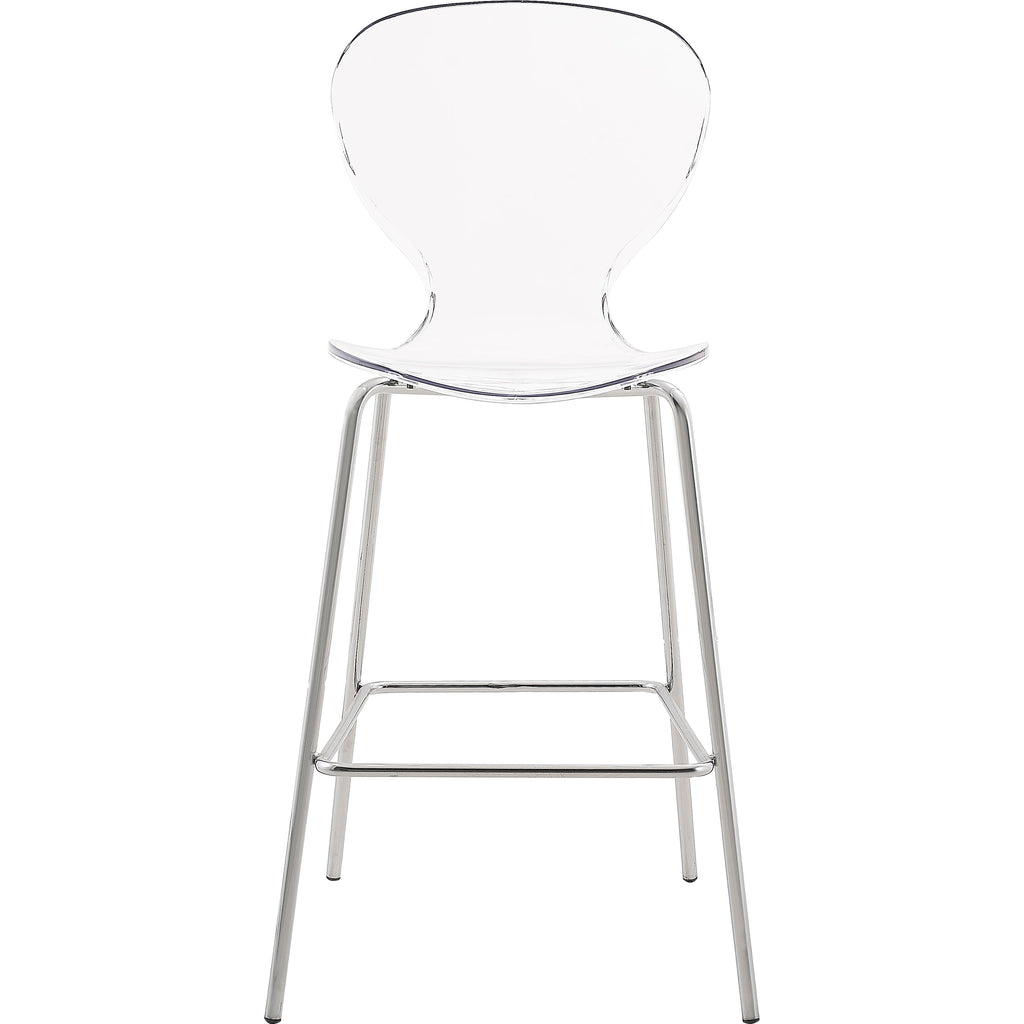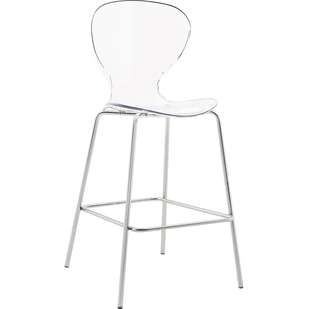 Infuse modernity into your kitchen counter or home bar with this Clarion stool. A translucent seat and back add a bold and contemporary look to your space while relying on the strength of Lucite polycarbonate to ensure sturdy strength and resilience. A classic metal base with a chrome finish contrasts nicely with the translucent top, giving your room a modern vibe that's hard to ignore yet basic and simple at the same time. A foot rest on the bottom of this stool gives you a spot for resting your feet while you wait on your frosty beverage.