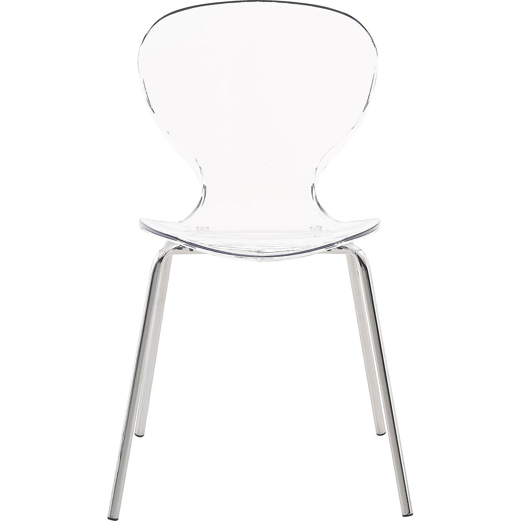 Infuse modernity into your dining room with this Clarion dining chair. A translucent seat and back add a bold and contemporary look to your space while relying on the strength of Lucite polycarbonate to ensure sturdy strength and resilience. A classic metal base with a chrome finish contrasts nicely with the translucent top, giving your room a modern vibe that's hard to ignore yet basic and simple at the same time.