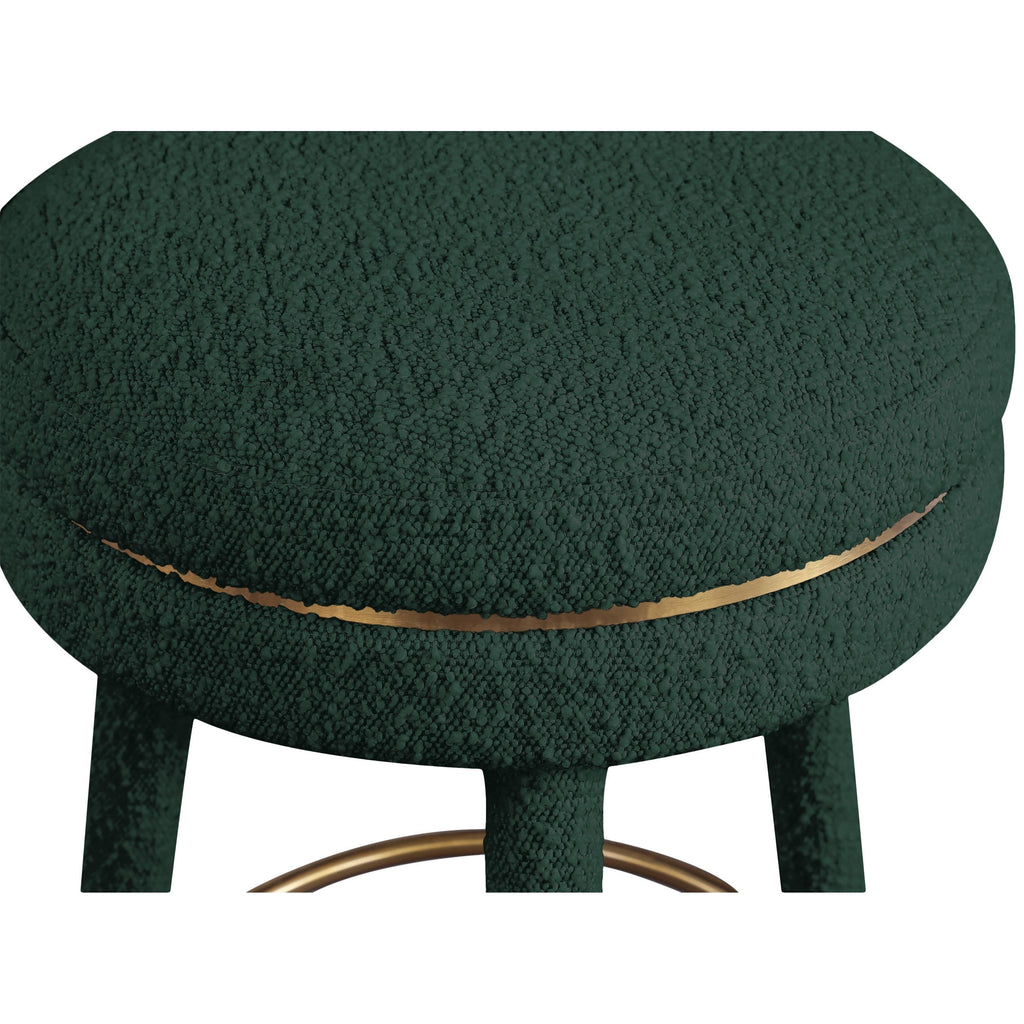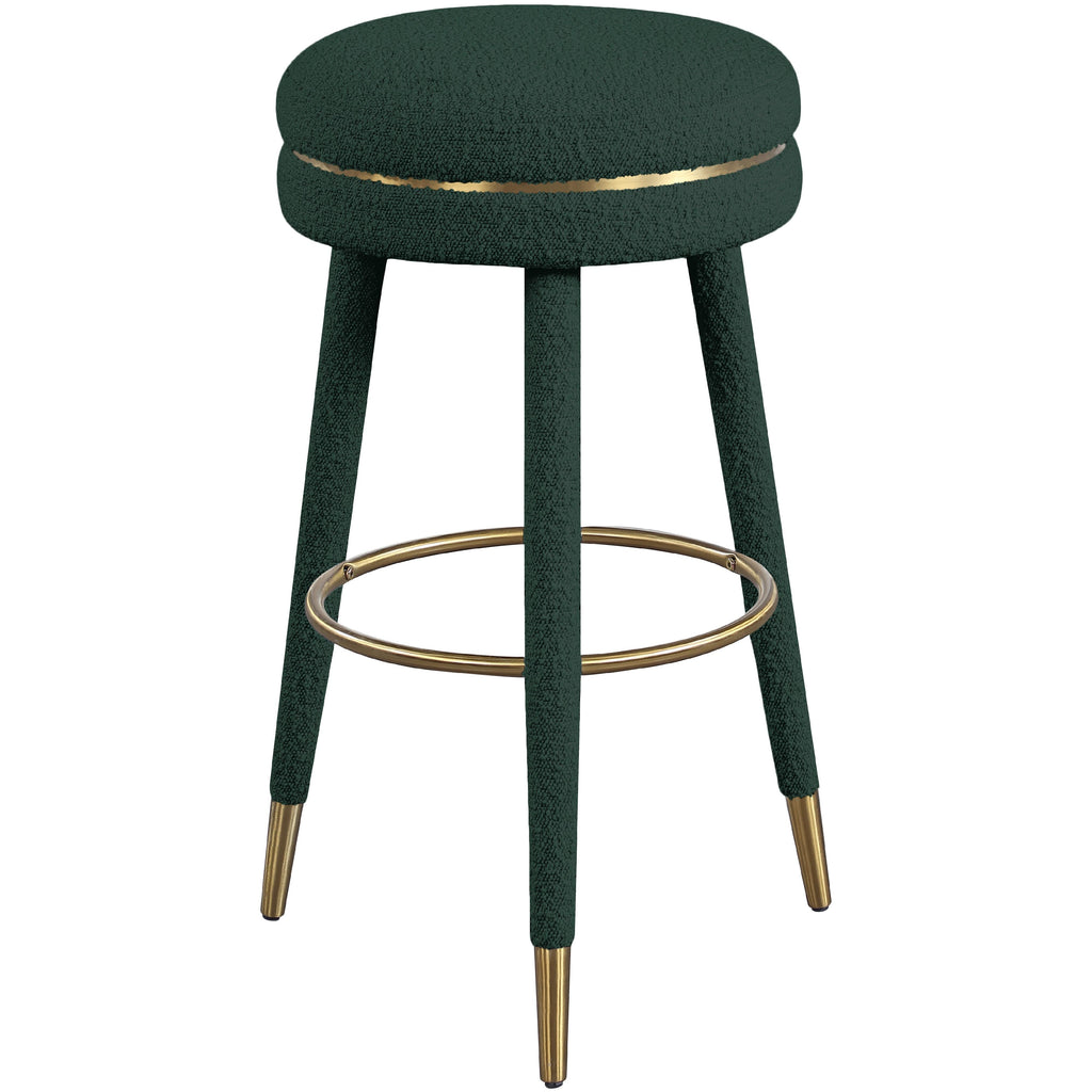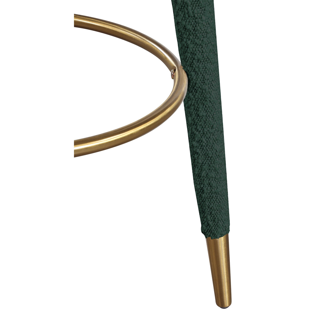 Liven up your breakfast nook with this Coral green boucle fabric bar stool from Meridian Furniture. Its rich green boucle fabric upholstery offers soft texture while you sit, and its swivel function allows you to twist and turn while you sit at the counter. This bar-height chair adds lift to your day while you swivel happily at your breakfast bar. It features brushed gold accents, giving it a contemporary design that complements any modern living space.