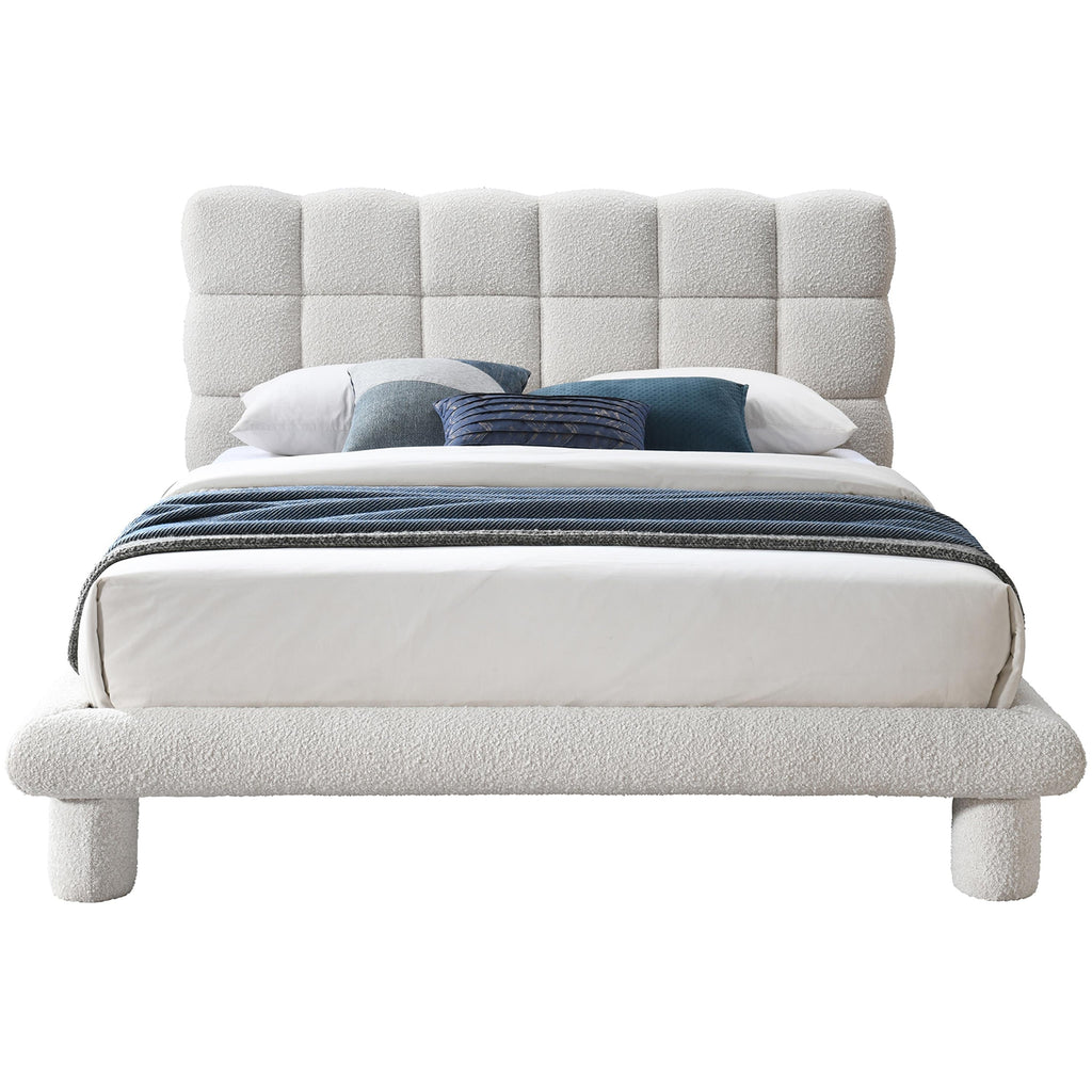 Meridian Deco Cream Boucle Fabric King Bed (3 Boxes)