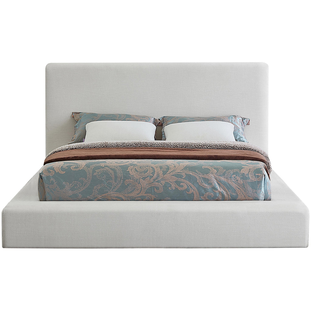 Meridian Devin Cream Linen Textured Fabric Queen Bed