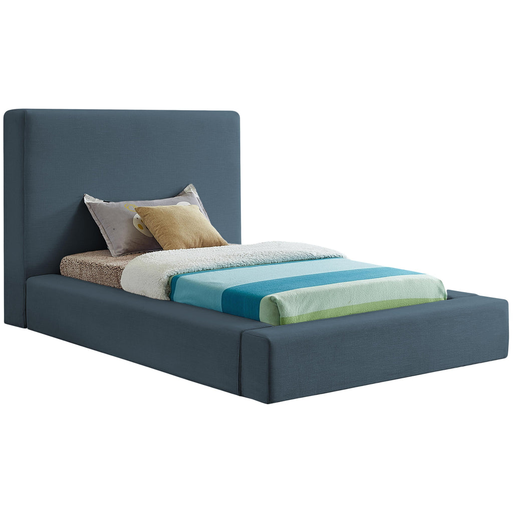 Curl up on this Devin full bed and feel like a VIP. This handsome bed has a distinctive upscale look, with its luxe navy linen textured fabric covering every square inch, from headboard to side rails and footboard, which are 8 inches thick for a luxuriously soft feel and comfort against your body while you relax and unwind before catching some Zs. The contemporary design is strikingly modern, adding an up-to-the-minute vibe to your bedroom space.