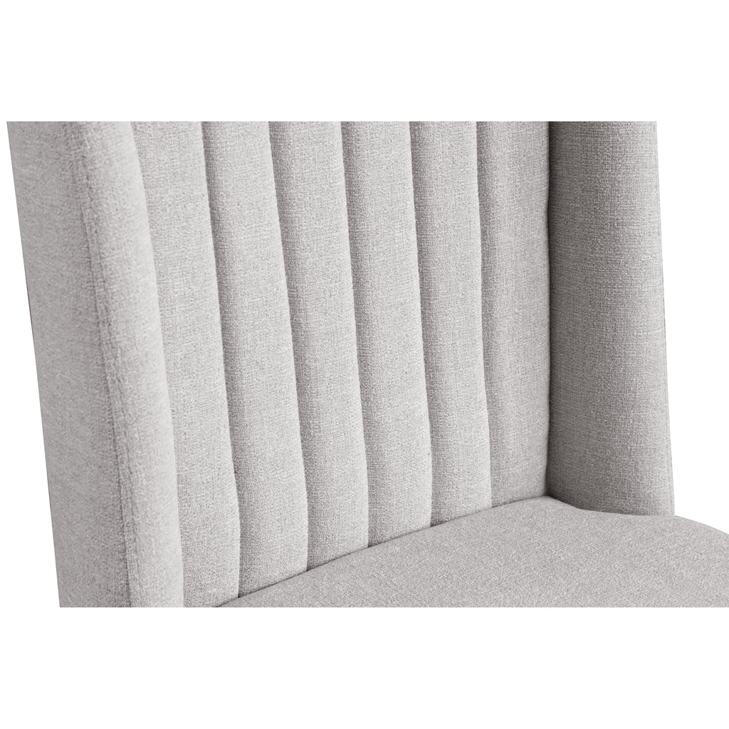 Inject traditional beauty into your dining room or breakfast nook with this Eleanor linen textured dining chair. This chair features cream linen textured fabric upholstery that's not just beautiful but is also durable and tough enough to hold up to daily use. This wing-back-style chair has deep channel tufting for added sophistication and brushed gold metal legs for sturdiness and strength.