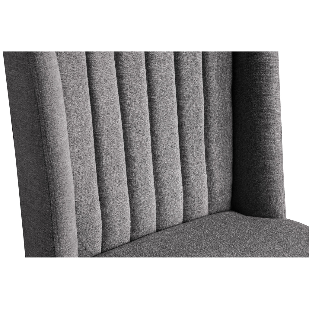 Inject traditional beauty into your dining room or breakfast nook with this Eleanor linen textured dining chair. This chair features grey linen textured fabric upholstery that's not just beautiful but is also durable and tough enough to hold up to daily use. This wing-back-style chair has deep channel tufting for added sophistication and brushed gold metal legs for sturdiness and strength.