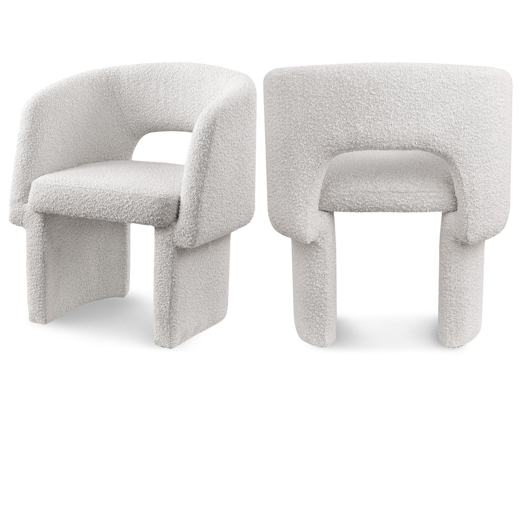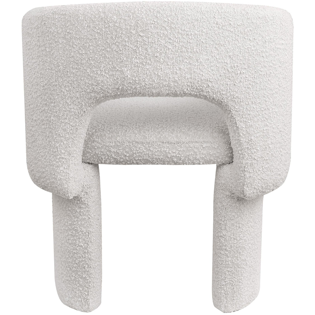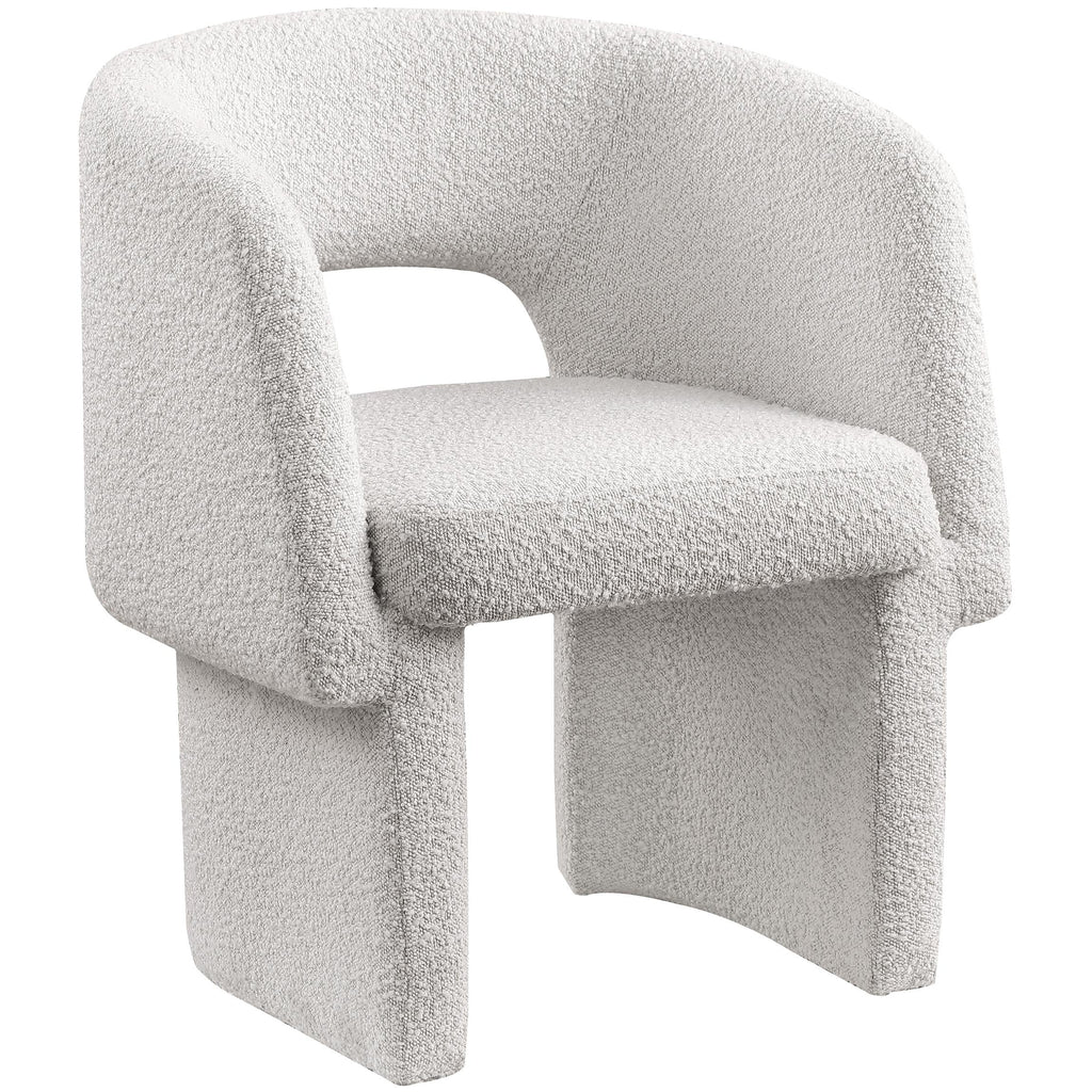 Give your dining room a blast of contemporary energy with his Emmet boucle fabric dining chair. Rich cream boucle fabric upholstery covers this chair from top to bottom, giving it a luxe feel that's soft to the touch and to the skin. The curvy back adds visual interest, and a steel inner frame ensures long-lived resilience and support. Buy this chair in multiples and pair it with the table of your choice for a fast and fabulous dining room rehab.