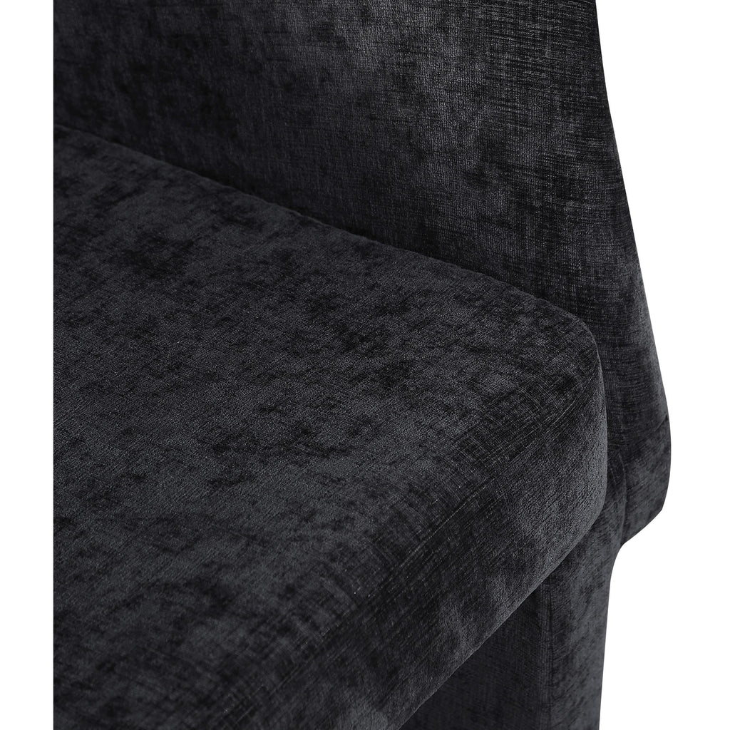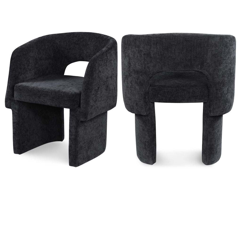 Give your dining room a blast of contemporary energy with his Emmet chenille fabric dining chair. Rich black chenille fabric upholstery covers this chair from top to bottom, giving it a luxe feel that's soft to the touch and to the skin. The curvy back adds visual interest, and a steel inner frame ensures long-lived resilience and support. Buy this chair in multiples and pair it with the table of your choice for a fast and fabulous dining room rehab.