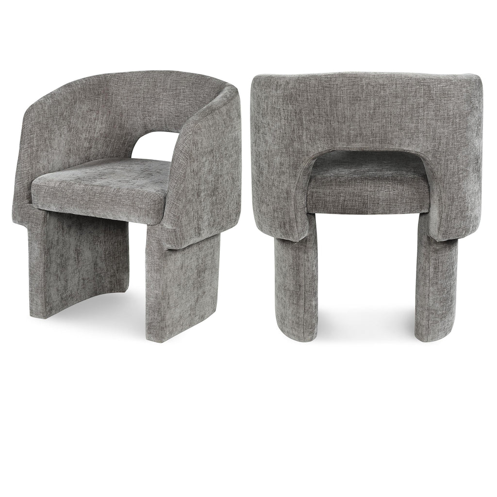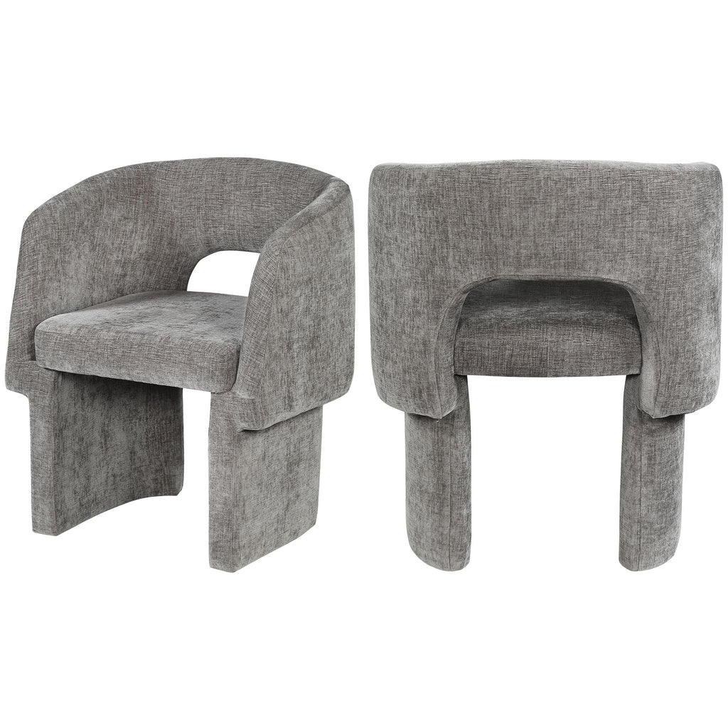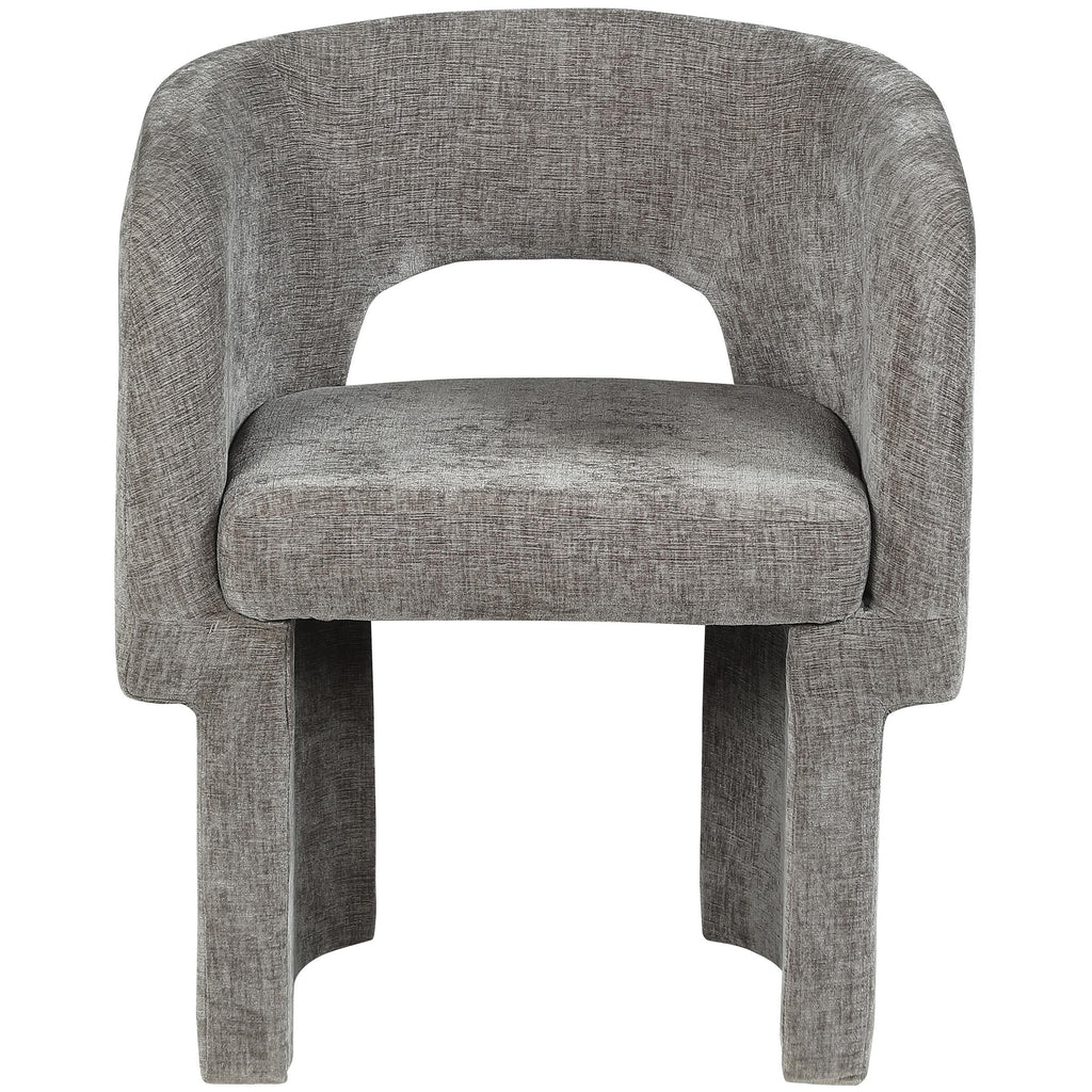 Give your dining room a blast of contemporary energy with his Emmet chenille fabric dining chair. Rich grey chenille fabric upholstery covers this chair from top to bottom, giving it a luxe feel that's soft to the touch and to the skin. The curvy back adds visual interest, and a steel inner frame ensures long-lived resilience and support. Buy this chair in multiples and pair it with the table of your choice for a fast and fabulous dining room rehab.